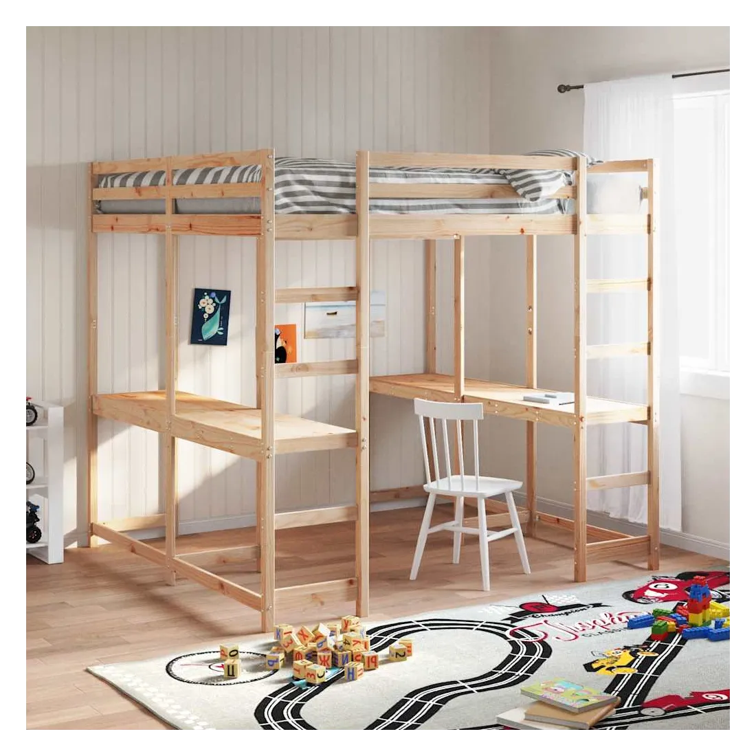 Ce lit mezzanine en bois est élégant et fonctionnel, ce qui en fait un supplément parfait à toute pièce dont l'espace est limité. Robuste et stable : le bois de pin massif est connu pour sa résistance et sa durabilité. Ses grains droits et ses nœuds distinctifs contribuent à son charme rustique.Barrières de sécurité : le lit intermédiaire est équipé de garde-corps de sécurité sur les 4 côtés, afin que vous puissiez dormir sans craindre de tomber.Bureau spacieux : le bureau est suffisamment grand pour accueillir un ordinateur portable et des livres, créant ainsi un espace d'étude confortable pour vous.Échelle pratique : l'échelle de ce lit mezzanine en bois facilite et sécurise le sommeil à l'étage supérieur et offre une sécurité et une stabilité suffisantes. Bon à savoir :La livraison comprend uniquement les cadres de lit. Les matelas ne sont pas inclus. Vous pouvez consulter notre boutique pour trouver les matelas assortis.Les vis et les chevilles pour l'intérieur du mur ne sont pas incluses. Nous vous conseillons de trouver et d'utiliser des vis et des chevilles adaptées spécifiquement à vos murs. Si vous n'êtes pas sûr, vous pouvez consulter un professionnel. Veuillez lire et suivre chaque étape des instructions.