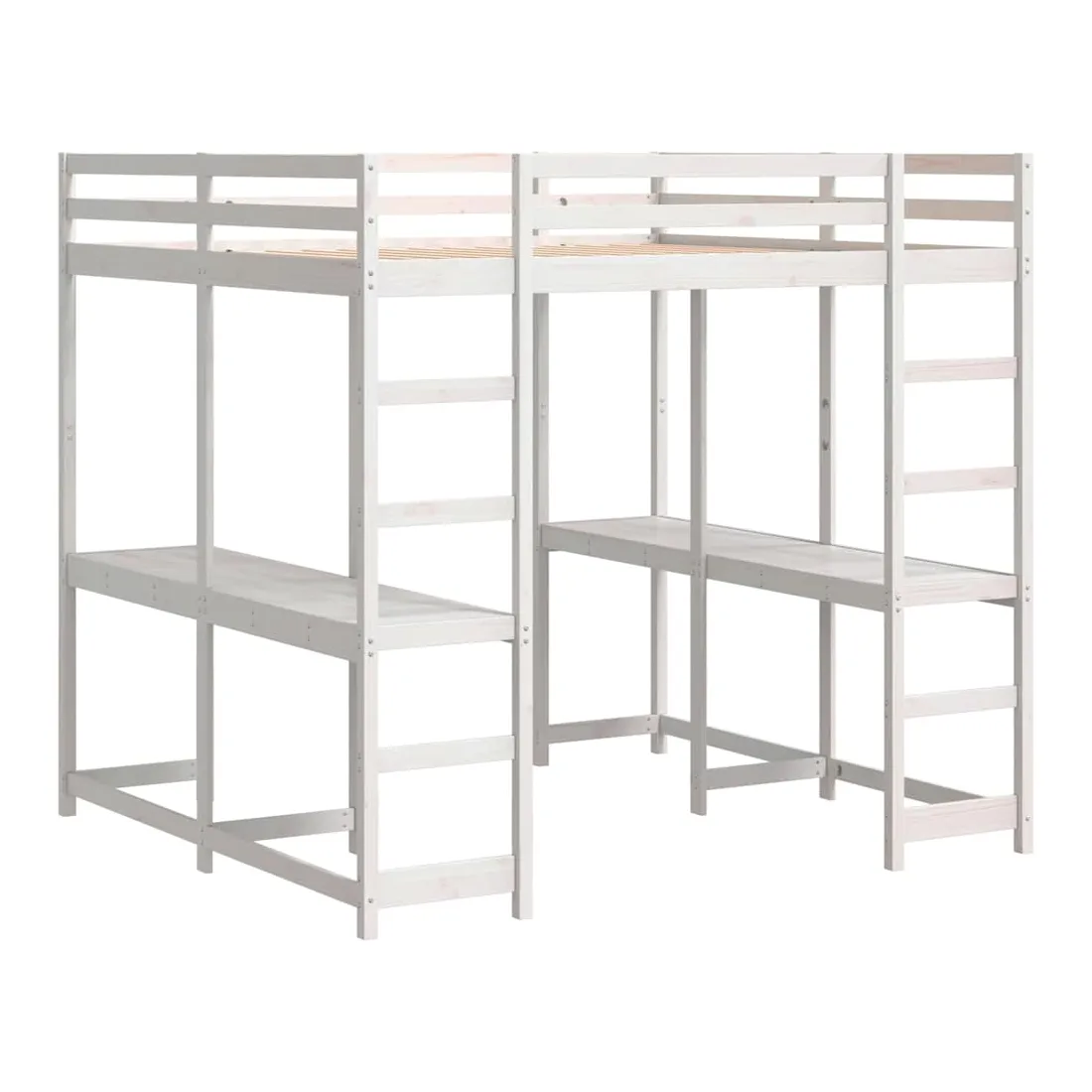 Ce lit mezzanine en bois est élégant et fonctionnel, ce qui en fait un supplément parfait à toute pièce dont l'espace est limité. Robuste et stable : le bois de pin massif est connu pour sa résistance et sa durabilité. Ses grains droits et ses nœuds distinctifs contribuent à son charme rustique.Barrières de sécurité : le lit intermédiaire est équipé de garde-corps de sécurité sur les 4 côtés, afin que vous puissiez dormir sans craindre de tomber.Bureau spacieux : le bureau est suffisamment grand pour accueillir un ordinateur portable et des livres, créant ainsi un espace d'étude confortable pour vous.Échelle pratique : l'échelle de ce lit mezzanine en bois facilite et sécurise le sommeil à l'étage supérieur et offre une sécurité et une stabilité suffisantes. Bon à savoir :La livraison comprend uniquement les cadres de lit. Les matelas ne sont pas inclus. Vous pouvez consulter notre boutique pour trouver les matelas assortis.Les vis et les chevilles pour l'intérieur du mur ne sont pas incluses. Nous vous conseillons de trouver et d'utiliser des vis et des chevilles adaptées spécifiquement à vos murs. Si vous n'êtes pas sûr, vous pouvez consulter un professionnel. Veuillez lire et suivre chaque étape des instructions.