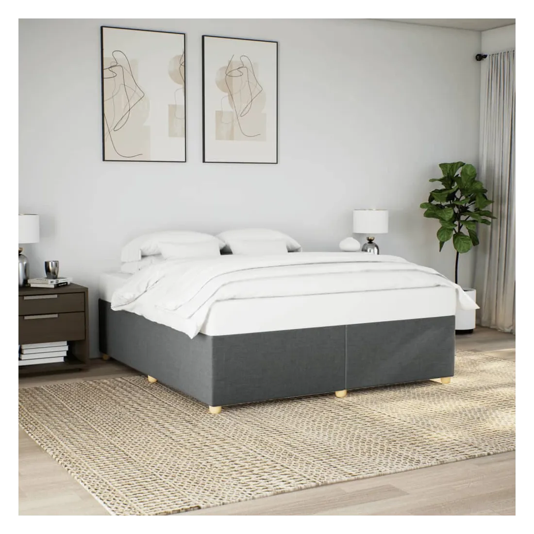 Profitez d'une meilleure nuit de sommeil reposante grâce à ce cadre de lit ! Il est un supplément accueillant à toute chambre à coucher. Matériau doux et durable : le tissu en polyester allie douceur, respirabilité et durabilité, vous garantissant un confort et une convivialité ultimes.Lattes pour un soutien optimal : ce cadre de lit est complété par des lattes pour offrir un soutien et une respirabilité essentiels à votre matelas.Pieds stables et durables : ce lit est soutenu par des pieds robustes, ce qui garantit sa stabilité, sa sécurité et sa fermeté. Bon à savoir :Un matelas n'est pas inclus avec ce lit. Nous offrons une sélection variée de matelas. Vous pouvez consulter notre boutique pour trouver un matelas assorti.