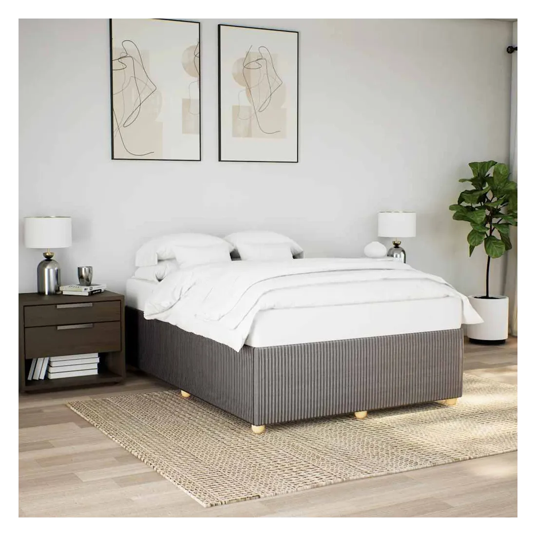 Profitez d'une meilleure nuit de sommeil reposante grâce à ce cadre de lit ! Il est un supplément accueillant à toute chambre à coucher. Matériau doux et durable : le tissu en polyester allie douceur, respirabilité et durabilité, vous garantissant un confort et une convivialité ultimes.Lattes pour un soutien optimal : ce cadre de lit est complété par des lattes pour offrir un soutien et une respirabilité essentiels à votre matelas.Pieds stables et durables : ce lit est soutenu par des pieds robustes, ce qui garantit sa stabilité, sa sécurité et sa fermeté. Bon à savoir :Un matelas n'est pas inclus avec ce lit. Nous offrons une sélection variée de matelas. Vous pouvez consulter notre boutique pour trouver un matelas assorti.