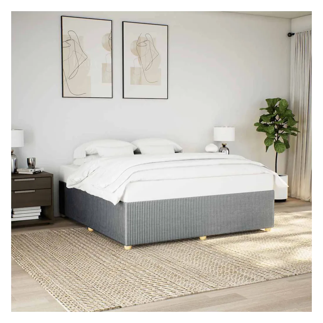 Profitez d'une meilleure nuit de sommeil reposante grâce à ce cadre de lit ! Il est un supplément accueillant à toute chambre à coucher. Matériau doux et durable : le tissu en polyester allie douceur, respirabilité et durabilité, vous garantissant un confort et une convivialité ultimes.Lattes pour un soutien optimal : ce cadre de lit est complété par des lattes pour offrir un soutien et une respirabilité essentiels à votre matelas.Pieds stables et durables : ce lit est soutenu par des pieds robustes, ce qui garantit sa stabilité, sa sécurité et sa fermeté. Bon à savoir :Un matelas n'est pas inclus avec ce lit. Nous offrons une sélection variée de matelas. Vous pouvez consulter notre boutique pour trouver un matelas assorti.