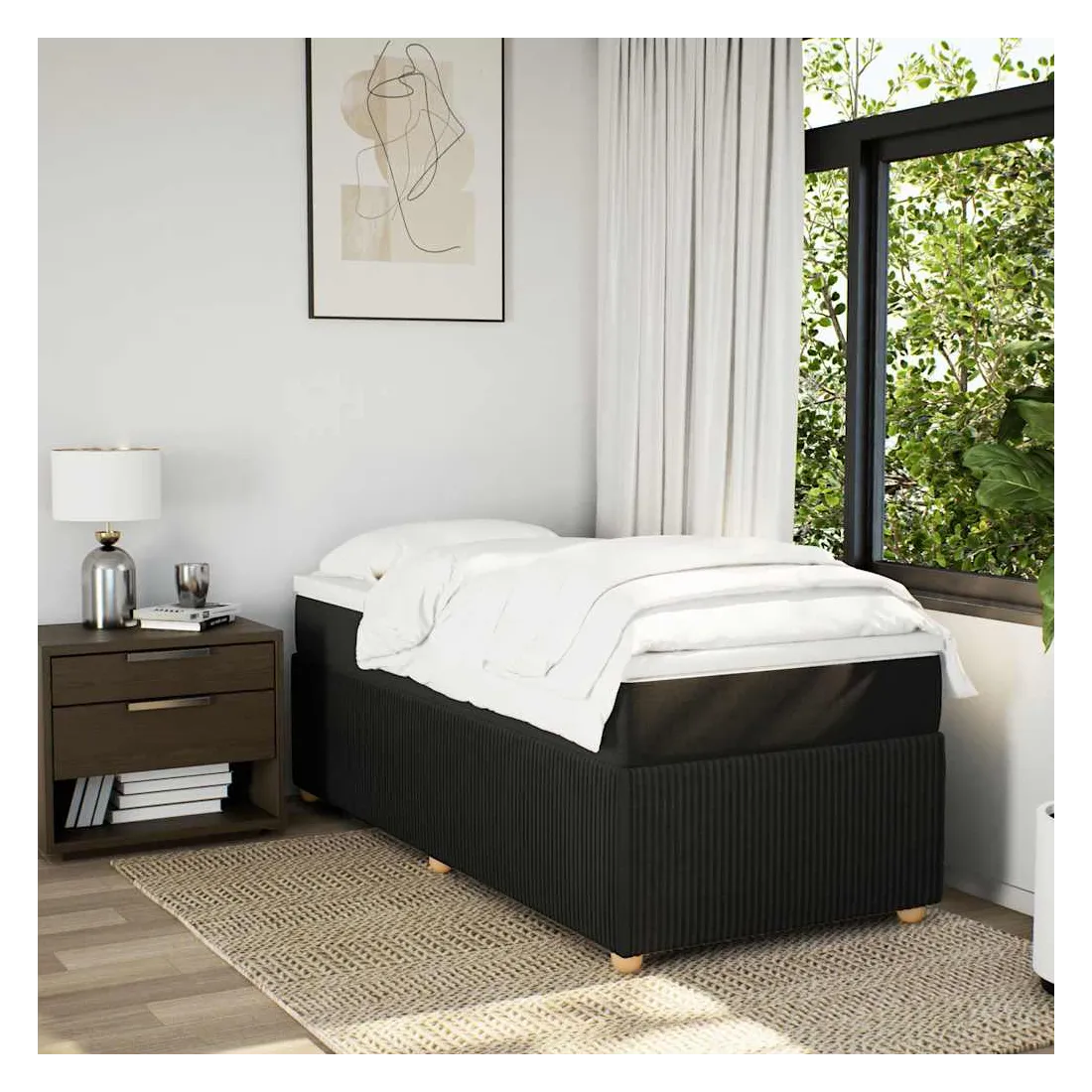 Utilisez ce lit à sommier pour profiter d'une nuit de sommeil réparatrice ! Il vous offre une relaxation maximale et un sommeil agréable. Matériau doux et durable : le tissu en polyester allie douceur, respirabilité et durabilité, vous garantissant un confort et une convivialité ultimes.Matelas à ressorts ensachés : ce matelas à ressorts ensachés comporte des ressorts ensachés individuels qui fonctionnent indépendamment pour offrir un soutien personnalisé en réagissant uniquement à la pression exercée dans chaque zone. Cette conception empêche « l'enroulement » et réduit le transfert de mouvement par rapport aux matelas traditionnels à ressorts ouverts. Chaque ressort ensaché soutient le corps individuellement.Surmatelas confortable : ce surmatelas améliore le soutien et le confort grâce à sa surface douce et respirante, tout en prolongeant la durée de vie de votre matelas. Sa housse amovible permet un lavage facile, ce qui facilite l'entretien.Lattes pour un soutien optimal : le cadre de lit est complété par des lattes pour offrir un soutien et une respirabilité essentiels à votre matelas.Pieds stables et durables : ce lit est soutenu par des pieds robustes, ce qui garantit sa stabilité, sa sécurité et sa fermeté. Bon à savoir :Pour des raisons d'hygiène, le matelas ne peut pas être retourné si l'emballage est retiré ou ouvert.