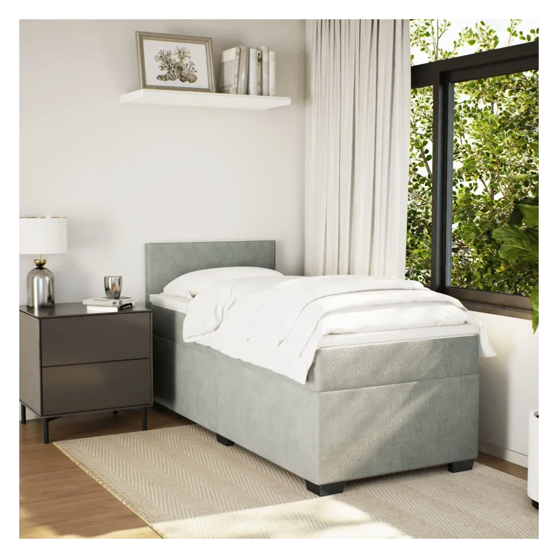 Utilisez ce lit à sommier pour profiter d'une nuit de sommeil réparatrice ! Il vous offre une relaxation maximale et un sommeil agréable. Velours doux : le velours est un tissu doux et luxueux qui se reconnaît à son tas dense de fibres uniformément coupées qui ont une touche lisse. Le tissu en velours présente un toucher doux distinctif, ce qui le rend confortable au toucher.Matelas à ressorts ensachés : ce matelas à ressorts ensachés comporte des ressorts ensachés individuels qui fonctionnent indépendamment pour offrir un soutien personnalisé en réagissant uniquement à la pression exercée dans chaque zone. Cette conception empêche « l'enroulement » et réduit le transfert de mouvement par rapport aux matelas traditionnels à ressorts ouverts. Chaque ressort ensaché soutient le corps individuellement.Surmatelas confortable : ce surmatelas améliore le soutien et le confort grâce à sa surface douce et respirante, tout en prolongeant la durée de vie de votre matelas. Sa housse amovible permet un lavage facile, ce qui facilite l'entretien.Excellent soutien : la tête de lit vous offre un excellent soutien du dos lorsque vous êtes assis dans votre lit pour lire ou regarder la télévision.Pieds stables et durables : ce lit est soutenu par des pieds robustes, ce qui garantit sa stabilité, sa sécurité et sa fermeté. Bon à savoir :Pour des raisons d'hygiène, le matelas ne peut pas être retourné si l'emballage est retiré ou ouvert.