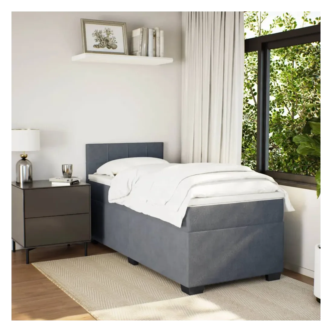 Utilisez ce lit à sommier pour profiter d'une nuit de sommeil réparatrice ! Il vous offre une relaxation maximale et un sommeil agréable. Velours doux : le velours est un tissu doux et luxueux qui se reconnaît à son tas dense de fibres uniformément coupées qui ont une touche lisse. Le tissu en velours présente un toucher doux distinctif, ce qui le rend confortable au toucher.Matelas à ressorts ensachés : ce matelas à ressorts ensachés comporte des ressorts ensachés individuels qui fonctionnent indépendamment pour offrir un soutien personnalisé en réagissant uniquement à la pression exercée dans chaque zone. Cette conception empêche « l'enroulement » et réduit le transfert de mouvement par rapport aux matelas traditionnels à ressorts ouverts. Chaque ressort ensaché soutient le corps individuellement.Surmatelas confortable : ce surmatelas améliore le soutien et le confort grâce à sa surface douce et respirante, tout en prolongeant la durée de vie de votre matelas. Sa housse amovible permet un lavage facile, ce qui facilite l'entretien.Excellent soutien : la tête de lit vous offre un excellent soutien du dos lorsque vous êtes assis dans votre lit pour lire ou regarder la télévision.Pieds stables et durables : ce lit est soutenu par des pieds robustes, ce qui garantit sa stabilité, sa sécurité et sa fermeté. Bon à savoir :Pour des raisons d'hygiène, le matelas ne peut pas être retourné si l'emballage est retiré ou ouvert.