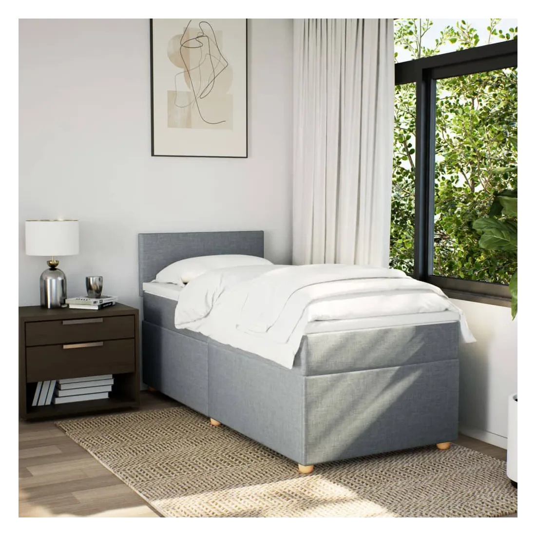 Utilisez ce lit à sommier pour profiter d'une nuit de sommeil réparatrice ! Il vous offre une relaxation maximale et un sommeil agréable. Matériau doux et durable : le tissu en polyester allie douceur, respirabilité et durabilité, vous garantissant un confort et une convivialité ultimes.Matelas à ressorts ensachés : ce matelas à ressorts ensachés comporte des ressorts ensachés individuels qui fonctionnent indépendamment pour offrir un soutien personnalisé en réagissant uniquement à la pression exercée dans chaque zone. Cette conception empêche « l'enroulement » et réduit le transfert de mouvement par rapport aux matelas traditionnels à ressorts ouverts. Chaque ressort ensaché soutient le corps individuellement.Surmatelas confortable : ce surmatelas améliore le soutien et le confort grâce à sa surface douce et respirante, tout en prolongeant la durée de vie de votre matelas. Sa housse amovible permet un lavage facile, ce qui facilite l'entretien.Lattes pour un soutien optimal : le cadre de lit est complété par des lattes pour offrir un soutien et une respirabilité essentiels à votre matelas. Bon à savoir :Pour des raisons d'hygiène, le matelas ne peut pas être retourné si l'emballage est retiré ou ouvert.