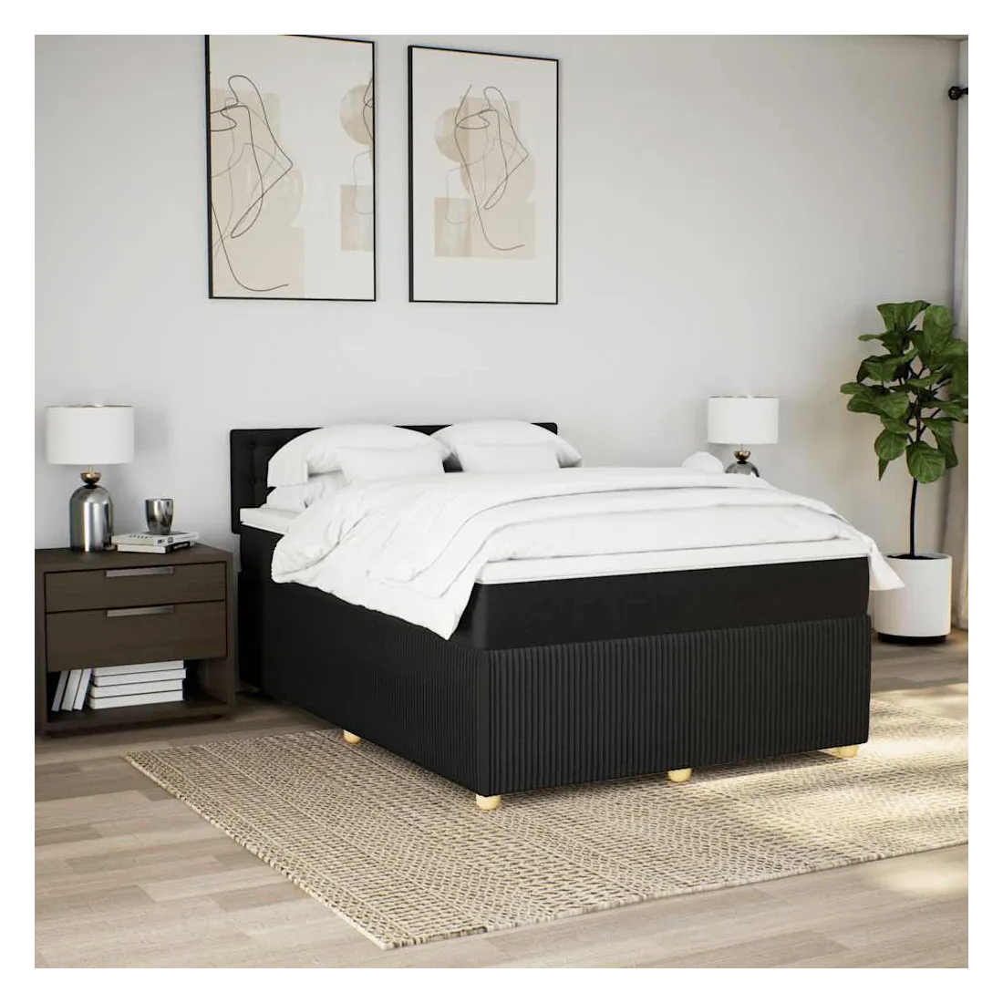 Sommier à lattes de lit avec matelas Noir 140x190 cm Tissu