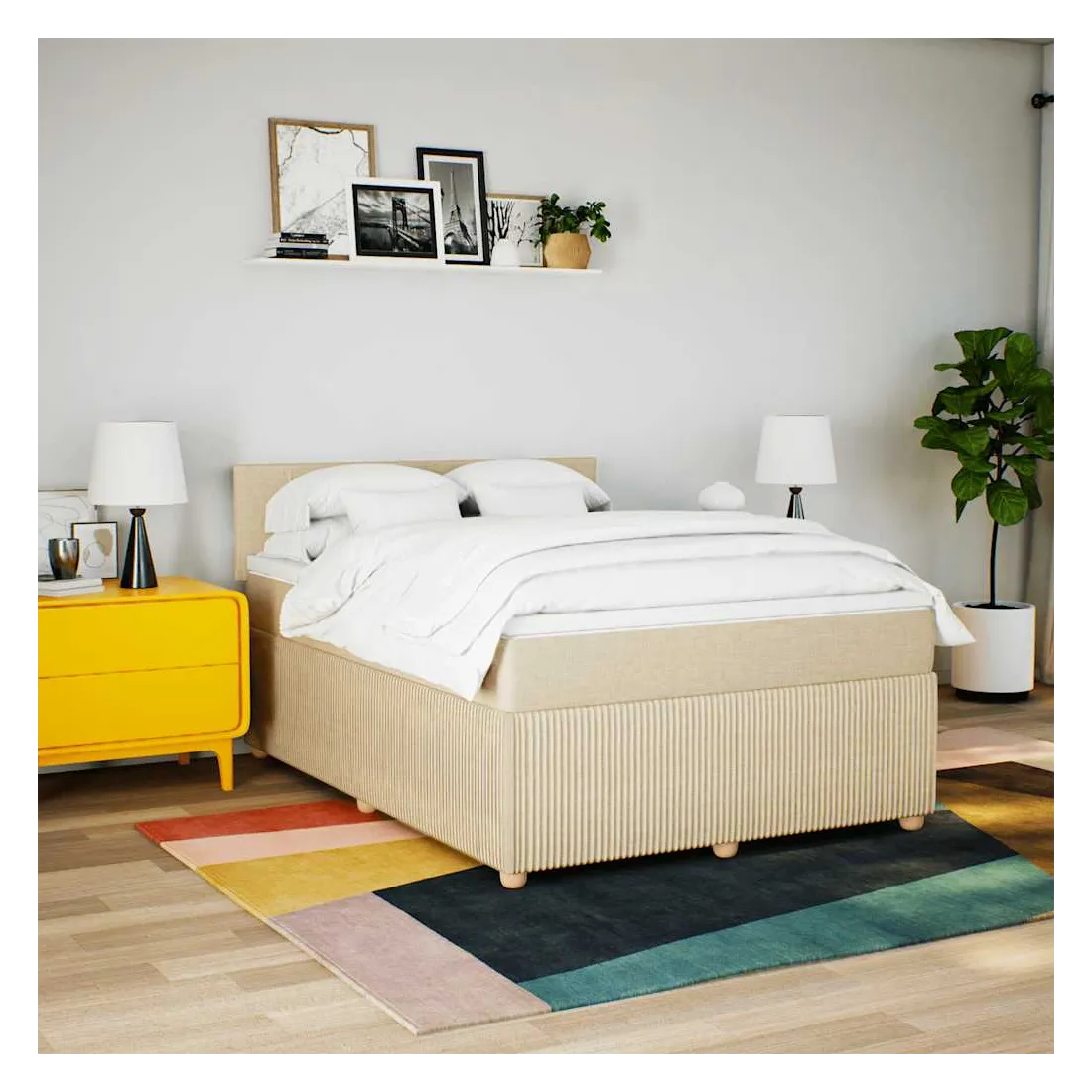 Sommier à lattes de lit avec matelas Crème 160x200 cm Tissu