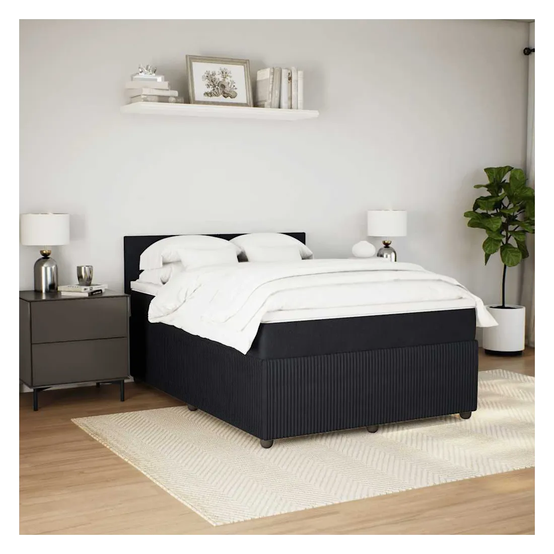 Sommier à lattes de lit avec matelas Noir 140x190 cm Velours