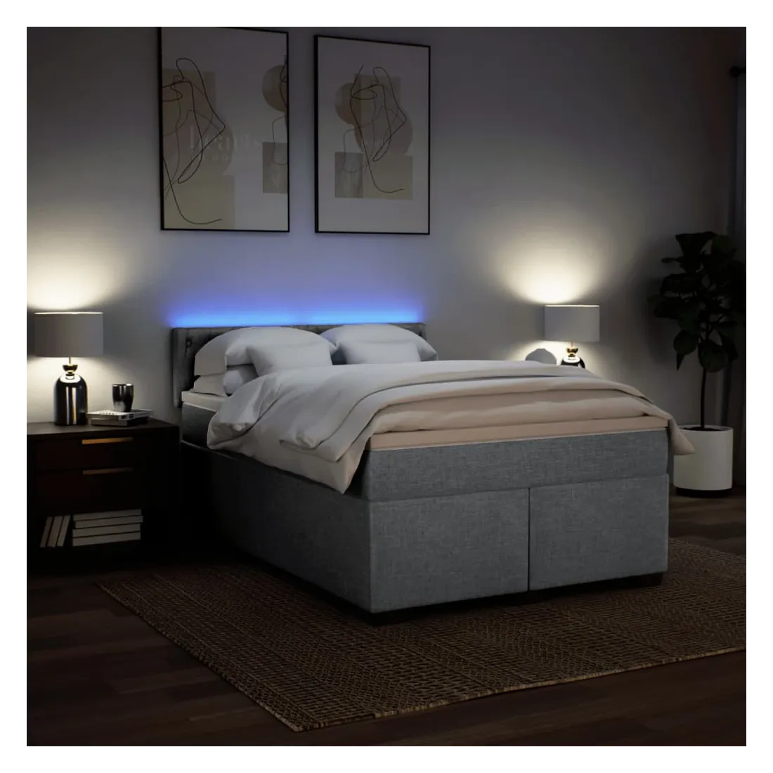 Utilisez ce lit à sommier pour profiter d'une nuit de sommeil réparatrice ! Il vous offre une relaxation maximale et un sommeil agréable. Matériau doux et durable : le tissu en polyester allie douceur, respirabilité et durabilité, vous garantissant un confort et une convivialité ultimes.Matelas à ressorts ensachés : ce matelas à ressorts ensachés comporte des ressorts ensachés individuels qui fonctionnent indépendamment pour offrir un soutien personnalisé en réagissant uniquement à la pression exercée dans chaque zone. Cette conception empêche « l'enroulement » et réduit le transfert de mouvement par rapport aux matelas traditionnels à ressorts ouverts. Chaque ressort ensaché soutient le corps individuellement.Lumières LED pour une ambiance agréable : ce lit est équipé de lumières LED qui peuvent être facilement réglées pour créer un spectacle lumineux personnalisé. Vous pouvez personnaliser les modes, les couleurs et la luminosité pour améliorer l'ambiance de votre espace intérieur.Surmatelas confortable : ce surmatelas améliore le soutien et le confort grâce à sa surface douce et respirante, tout en prolongeant la durée de vie de votre matelas. Sa housse amovible permet un lavage facile, ce qui facilite l'entretien. Bon à savoir :Ce produit est doté d'un connecteur USB qui nécessite une source d'alimentation USB de 5V certifiée (non incluse).Pour des raisons d'hygiène, le matelas ne peut pas être retourné si l'emballage est retiré ou ouvert.Seule la partie avec un symbole de ciseaux peut être coupée et seule la partie avec l'USB continuera à fonctionner comme avant.