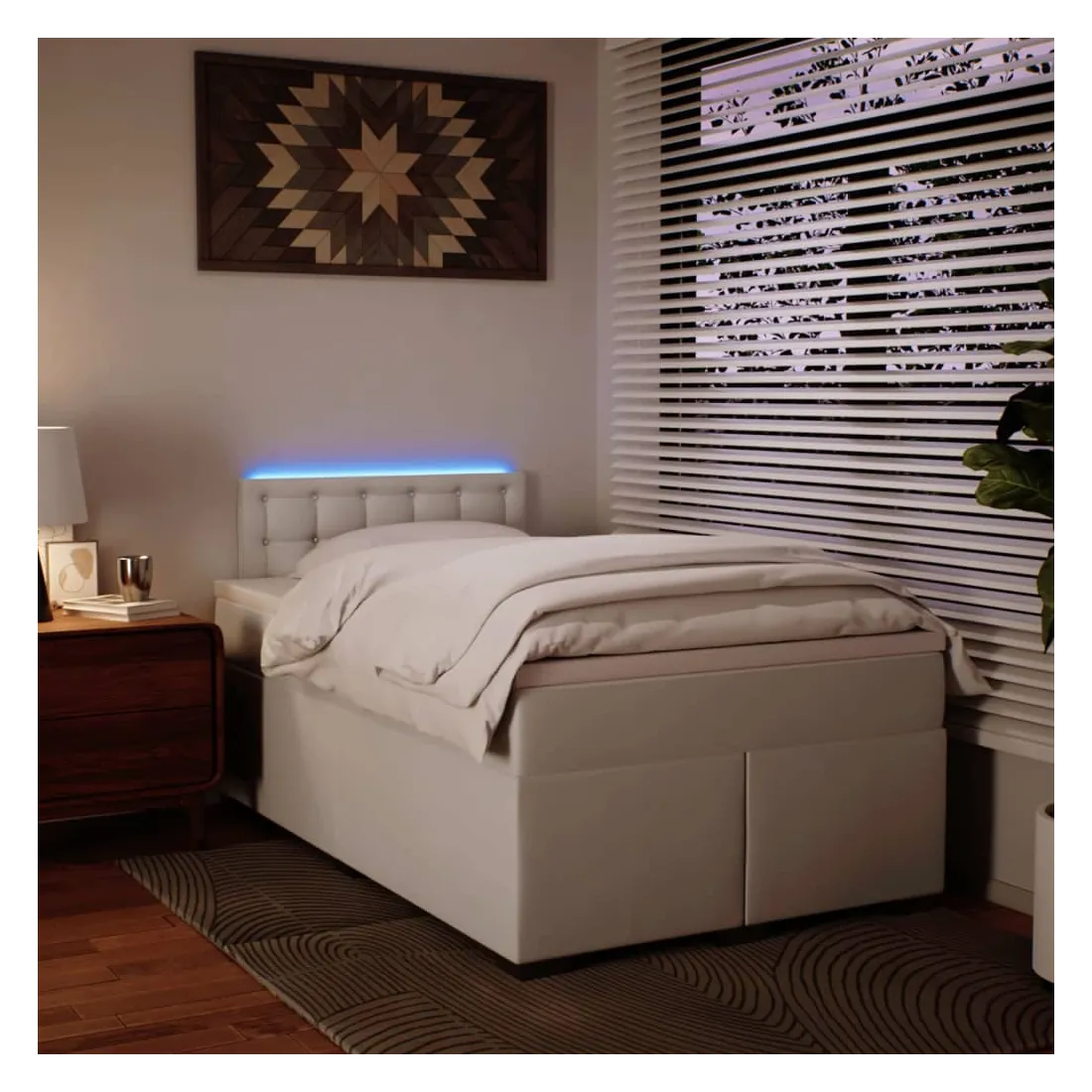 Utilisez ce lit à sommier pour profiter d'une nuit de sommeil réparatrice ! Il vous offre une relaxation maximale et un sommeil agréable. Longue durée de vie et entretien facile : le similicuir est un matériau très durable qui résiste aux taches, ce qui le rend facile à nettoyer avec un chiffon humide. Sa surface lisse lui confère un aspect élégant qui ressemble à celui du cuir véritable.Matelas à ressorts ensachés : ce matelas à ressorts ensachés comporte des ressorts ensachés individuels qui fonctionnent indépendamment pour offrir un soutien personnalisé en réagissant uniquement à la pression exercée dans chaque zone. Cette conception empêche « l'enroulement » et réduit le transfert de mouvement par rapport aux matelas traditionnels à ressorts ouverts. Chaque ressort ensaché soutient le corps individuellement.Lumières LED pour une ambiance agréable : ce lit est équipé de lumières LED qui peuvent être facilement réglées pour créer un spectacle lumineux personnalisé. Vous pouvez personnaliser les modes, les couleurs et la luminosité pour améliorer l'ambiance de votre espace intérieur.Surmatelas confortable : ce surmatelas améliore le soutien et le confort grâce à sa surface douce et respirante, tout en prolongeant la durée de vie de votre matelas. Sa housse amovible permet un lavage facile, ce qui facilite l'entretien. Bon à savoir :Ce produit est doté d'un connecteur USB qui nécessite une source d'alimentation USB de 5V certifiée (non incluse).Pour des raisons d'hygiène, le matelas ne peut pas être retourné si l'emballage est retiré ou ouvert.Seule la partie avec un symbole de ciseaux peut être coupée et seule la partie avec l'USB continuera à fonctionner comme avant.