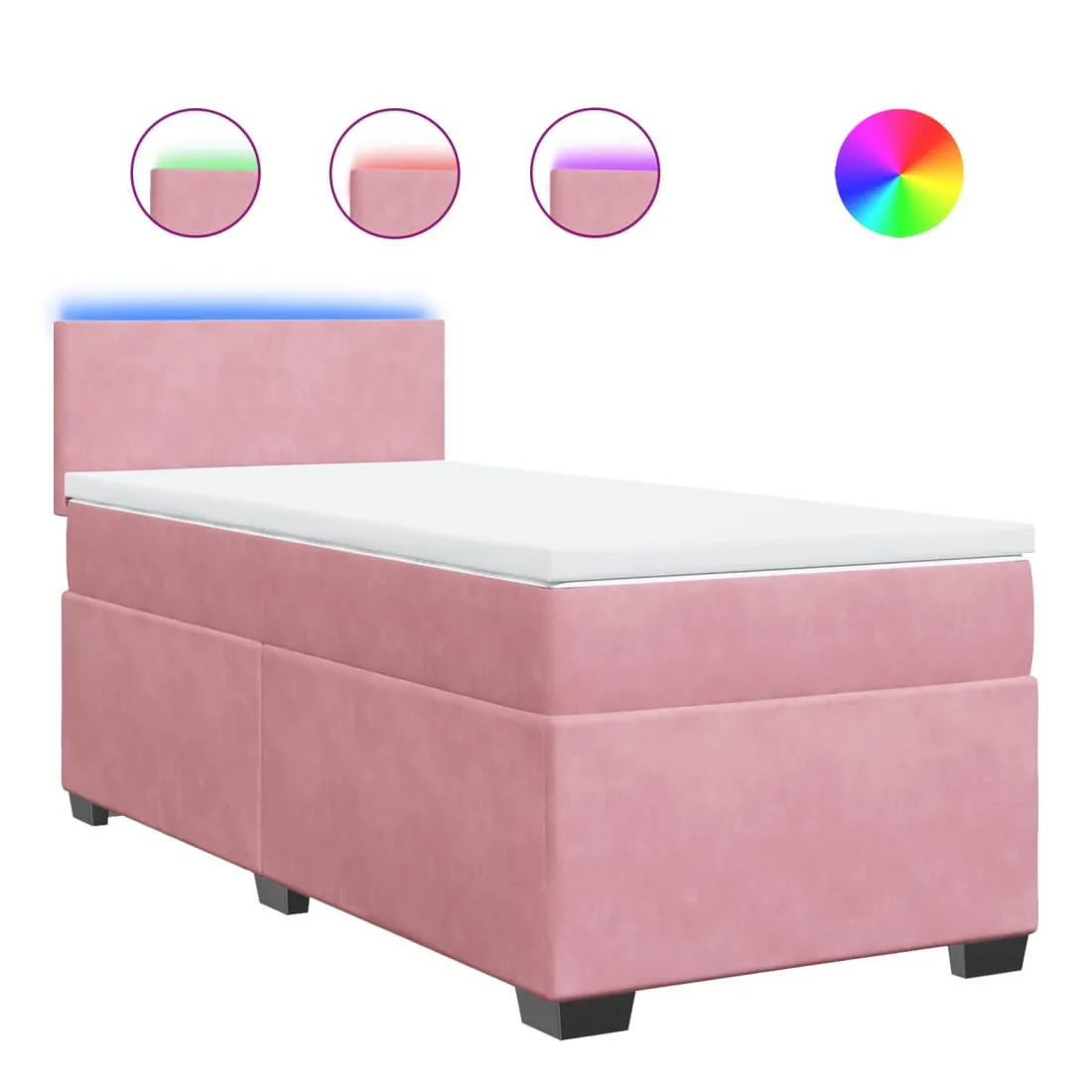 Utilisez ce lit à sommier pour profiter d'une nuit de sommeil réparatrice ! Il vous offre une relaxation maximale et un sommeil agréable. Matériau doux et confortable : le tissu en velours présente une surface douce et lisse qui offre une sensation agréable contre la peau, vous apportant chaleur et confort ultime.Matelas à ressorts ensachés : ce matelas à ressorts ensachés comporte des ressorts ensachés individuels qui fonctionnent indépendamment pour offrir un soutien personnalisé en réagissant uniquement à la pression exercée dans chaque zone. Cette conception empêche « l'enroulement » et réduit le transfert de mouvement par rapport aux matelas traditionnels à ressorts ouverts. Chaque ressort ensaché soutient le corps individuellement.Lumières LED pour une ambiance agréable : ce lit est équipé de lumières LED qui peuvent être facilement réglées pour créer un spectacle lumineux personnalisé. Vous pouvez personnaliser les modes, les couleurs et la luminosité pour améliorer l'ambiance de votre espace intérieur.Surmatelas confortable : ce surmatelas améliore le soutien et le confort grâce à sa surface douce et respirante, tout en prolongeant la durée de vie de votre matelas. Sa housse amovible permet un lavage facile, ce qui facilite l'entretien. Bon à savoir :Ce produit est doté d'un connecteur USB qui nécessite une source d'alimentation USB de 5V certifiée (non incluse).Pour des raisons d'hygiène, le matelas ne peut pas être retourné si l'emballage est retiré ou ouvert.Seule la partie avec un symbole de ciseaux peut être coupée et seule la partie avec l'USB continuera à fonctionner comme avant.