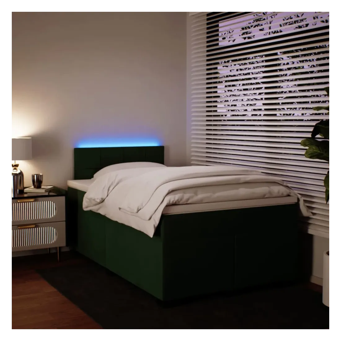 Utilisez ce lit à sommier pour profiter d'une nuit de sommeil réparatrice ! Il vous offre une relaxation maximale et un sommeil agréable. Matériau doux et confortable : le tissu en velours présente une surface douce et lisse qui offre une sensation agréable contre la peau, vous apportant chaleur et confort ultime.Matelas à ressorts ensachés : ce matelas à ressorts ensachés comporte des ressorts ensachés individuels qui fonctionnent indépendamment pour offrir un soutien personnalisé en réagissant uniquement à la pression exercée dans chaque zone. Cette conception empêche « l'enroulement » et réduit le transfert de mouvement par rapport aux matelas traditionnels à ressorts ouverts. Chaque ressort ensaché soutient le corps individuellement.Lumières LED pour une ambiance agréable : ce lit est équipé de lumières LED qui peuvent être facilement réglées pour créer un spectacle lumineux personnalisé. Vous pouvez personnaliser les modes, les couleurs et la luminosité pour améliorer l'ambiance de votre espace intérieur.Surmatelas confortable : ce surmatelas améliore le soutien et le confort grâce à sa surface douce et respirante, tout en prolongeant la durée de vie de votre matelas. Sa housse amovible permet un lavage facile, ce qui facilite l'entretien. Bon à savoir :Ce produit est doté d'un connecteur USB qui nécessite une source d'alimentation USB de 5V certifiée (non incluse).Pour des raisons d'hygiène, le matelas ne peut pas être retourné si l'emballage est retiré ou ouvert.Seule la partie avec un symbole de ciseaux peut être coupée et seule la partie avec l'USB continuera à fonctionner comme avant.