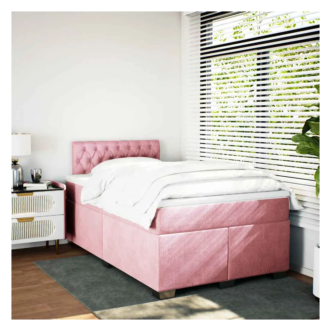 Sommier à lattes de lit avec matelas rose 120x190 cm velours