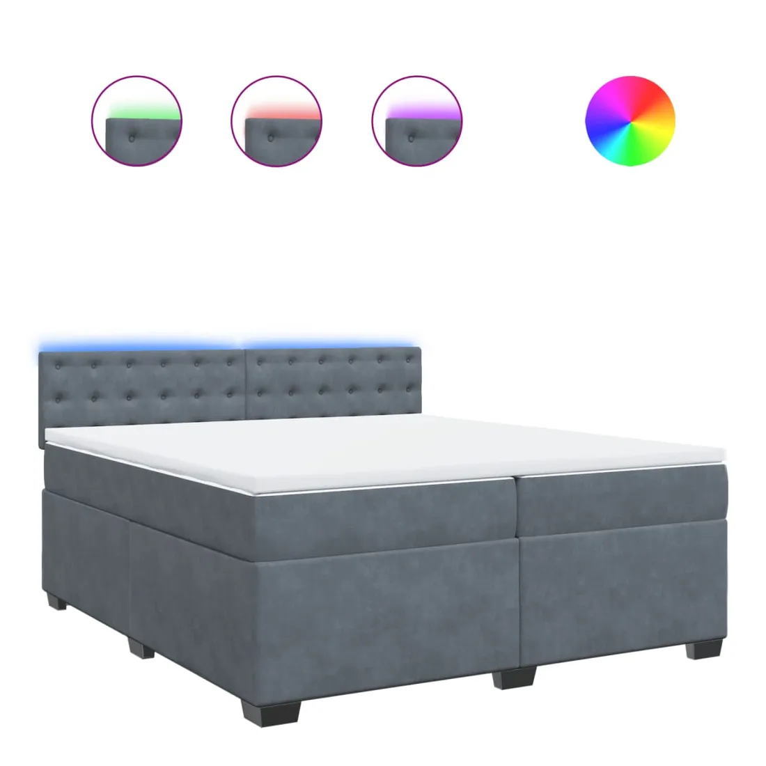 Utilisez ce lit à sommier pour profiter d'une nuit de sommeil réparatrice ! Il vous offre une relaxation maximale et un sommeil agréable. Matériau doux et confortable : le tissu en velours présente une surface douce et lisse qui offre une sensation agréable contre la peau, vous apportant chaleur et confort ultime.Matelas à ressorts ensachés : ce matelas à ressorts ensachés comporte des ressorts ensachés individuels qui fonctionnent indépendamment pour offrir un soutien personnalisé en réagissant uniquement à la pression exercée dans chaque zone. Cette conception empêche « l'enroulement » et réduit le transfert de mouvement par rapport aux matelas traditionnels à ressorts ouverts. Chaque ressort ensaché soutient le corps individuellement.Lumières LED pour une ambiance agréable : ce lit est équipé de lumières LED qui peuvent être facilement réglées pour créer un spectacle lumineux personnalisé. Vous pouvez personnaliser les modes, les couleurs et la luminosité pour améliorer l'ambiance de votre espace intérieur.Surmatelas confortable : ce surmatelas améliore le soutien et le confort grâce à sa surface douce et respirante, tout en prolongeant la durée de vie de votre matelas. Sa housse amovible permet un lavage facile, ce qui facilite l'entretien. Bon à savoir :Ce produit est doté d'un connecteur USB qui nécessite une source d'alimentation USB de 5V certifiée (non incluse).Pour des raisons d'hygiène, le matelas ne peut pas être retourné si l'emballage est retiré ou ouvert.Seule la partie avec un symbole de ciseaux peut être coupée et seule la partie avec l'USB continuera à fonctionner comme avant.