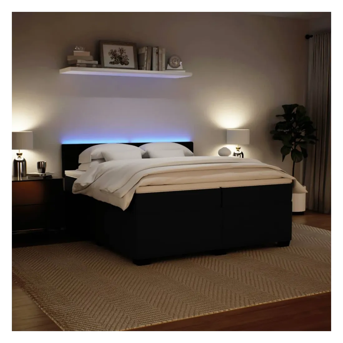 Utilisez ce lit à sommier pour profiter d'une nuit de sommeil réparatrice ! Il vous offre une relaxation maximale et un sommeil agréable. Matériau doux et confortable : le tissu en velours présente une surface douce et lisse qui offre une sensation agréable contre la peau, vous apportant chaleur et confort ultime.Matelas à ressorts ensachés : ce matelas à ressorts ensachés comporte des ressorts ensachés individuels qui fonctionnent indépendamment pour offrir un soutien personnalisé en réagissant uniquement à la pression exercée dans chaque zone. Cette conception empêche « l'enroulement » et réduit le transfert de mouvement par rapport aux matelas traditionnels à ressorts ouverts. Chaque ressort ensaché soutient le corps individuellement.Lumières LED pour une ambiance agréable : ce lit est équipé de lumières LED qui peuvent être facilement réglées pour créer un spectacle lumineux personnalisé. Vous pouvez personnaliser les modes, les couleurs et la luminosité pour améliorer l'ambiance de votre espace intérieur.Surmatelas confortable : ce surmatelas améliore le soutien et le confort grâce à sa surface douce et respirante, tout en prolongeant la durée de vie de votre matelas. Sa housse amovible permet un lavage facile, ce qui facilite l'entretien. Bon à savoir :Ce produit est doté d'un connecteur USB qui nécessite une source d'alimentation USB de 5V certifiée (non incluse).Pour des raisons d'hygiène, le matelas ne peut pas être retourné si l'emballage est retiré ou ouvert.Seule la partie avec un symbole de ciseaux peut être coupée et seule la partie avec l'USB continuera à fonctionner comme avant.