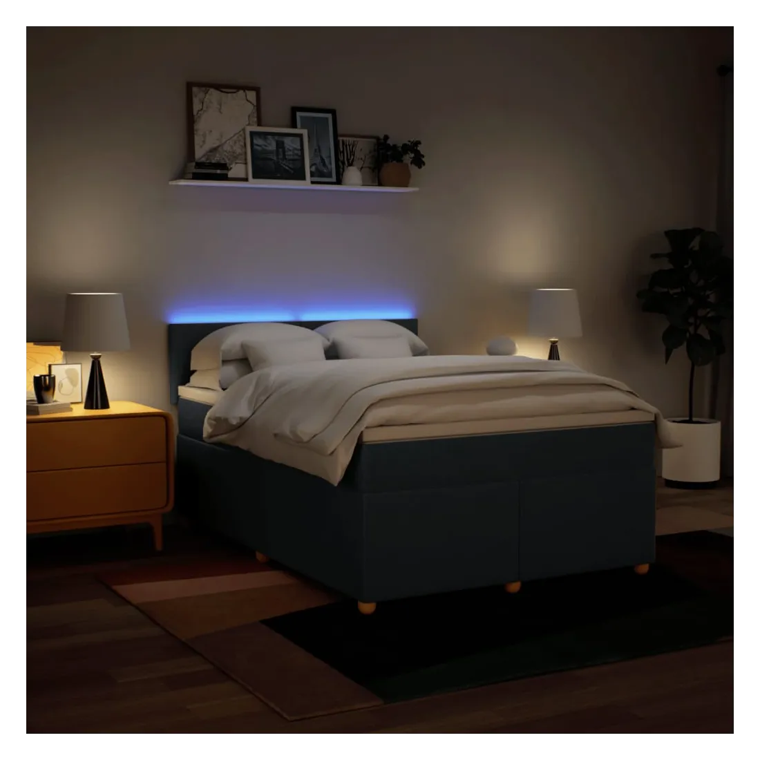 Utilisez ce lit à sommier pour profiter d'une nuit de sommeil réparatrice ! Il vous offre une relaxation maximale et un sommeil agréable. Matériau doux et durable : le tissu en polyester allie douceur, respirabilité et durabilité, vous garantissant un confort et une convivialité ultimes.Matelas à ressorts ensachés : ce matelas à ressorts ensachés comporte des ressorts ensachés individuels qui fonctionnent indépendamment pour offrir un soutien personnalisé en réagissant uniquement à la pression exercée dans chaque zone. Cette conception empêche « l'enroulement » et réduit le transfert de mouvement par rapport aux matelas traditionnels à ressorts ouverts. Chaque ressort ensaché soutient le corps individuellement.Lumières LED pour une ambiance agréable : ce lit est équipé de lumières LED qui peuvent être facilement réglées pour créer un spectacle lumineux personnalisé. Vous pouvez personnaliser les modes, les couleurs et la luminosité pour améliorer l'ambiance de votre espace intérieur.Surmatelas confortable : ce surmatelas améliore le soutien et le confort grâce à sa surface douce et respirante, tout en prolongeant la durée de vie de votre matelas. Sa housse amovible permet un lavage facile, ce qui facilite l'entretien. Bon à savoir :Ce produit est doté d'un connecteur USB qui nécessite une source d'alimentation USB de 5V certifiée (non incluse).Pour des raisons d'hygiène, le matelas ne peut pas être retourné si l'emballage est retiré ou ouvert.Seule la partie avec un symbole de ciseaux peut être coupée et seule la partie avec l'USB continuera à fonctionner comme avant.