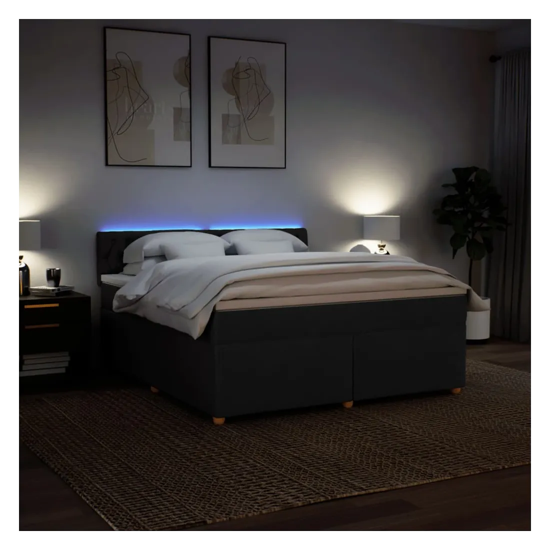 Utilisez ce lit à sommier pour profiter d'une nuit de sommeil réparatrice ! Il vous offre une relaxation maximale et un sommeil agréable. Matériau doux et durable : le tissu en polyester allie douceur, respirabilité et durabilité, vous garantissant un confort et une convivialité ultimes.Matelas à ressorts ensachés : ce matelas à ressorts ensachés comporte des ressorts ensachés individuels qui fonctionnent indépendamment pour offrir un soutien personnalisé en réagissant uniquement à la pression exercée dans chaque zone. Cette conception empêche « l'enroulement » et réduit le transfert de mouvement par rapport aux matelas traditionnels à ressorts ouverts. Chaque ressort ensaché soutient le corps individuellement.Lumières LED pour une ambiance agréable : ce lit est équipé de lumières LED qui peuvent être facilement réglées pour créer un spectacle lumineux personnalisé. Vous pouvez personnaliser les modes, les couleurs et la luminosité pour améliorer l'ambiance de votre espace intérieur.Surmatelas confortable : ce surmatelas améliore le soutien et le confort grâce à sa surface douce et respirante, tout en prolongeant la durée de vie de votre matelas. Sa housse amovible permet un lavage facile, ce qui facilite l'entretien. Bon à savoir :Ce produit est doté d'un connecteur USB qui nécessite une source d'alimentation USB de 5V certifiée (non incluse).Pour des raisons d'hygiène, le matelas ne peut pas être retourné si l'emballage est retiré ou ouvert.Seule la partie avec un symbole de ciseaux peut être coupée et seule la partie avec l'USB continuera à fonctionner comme avant.