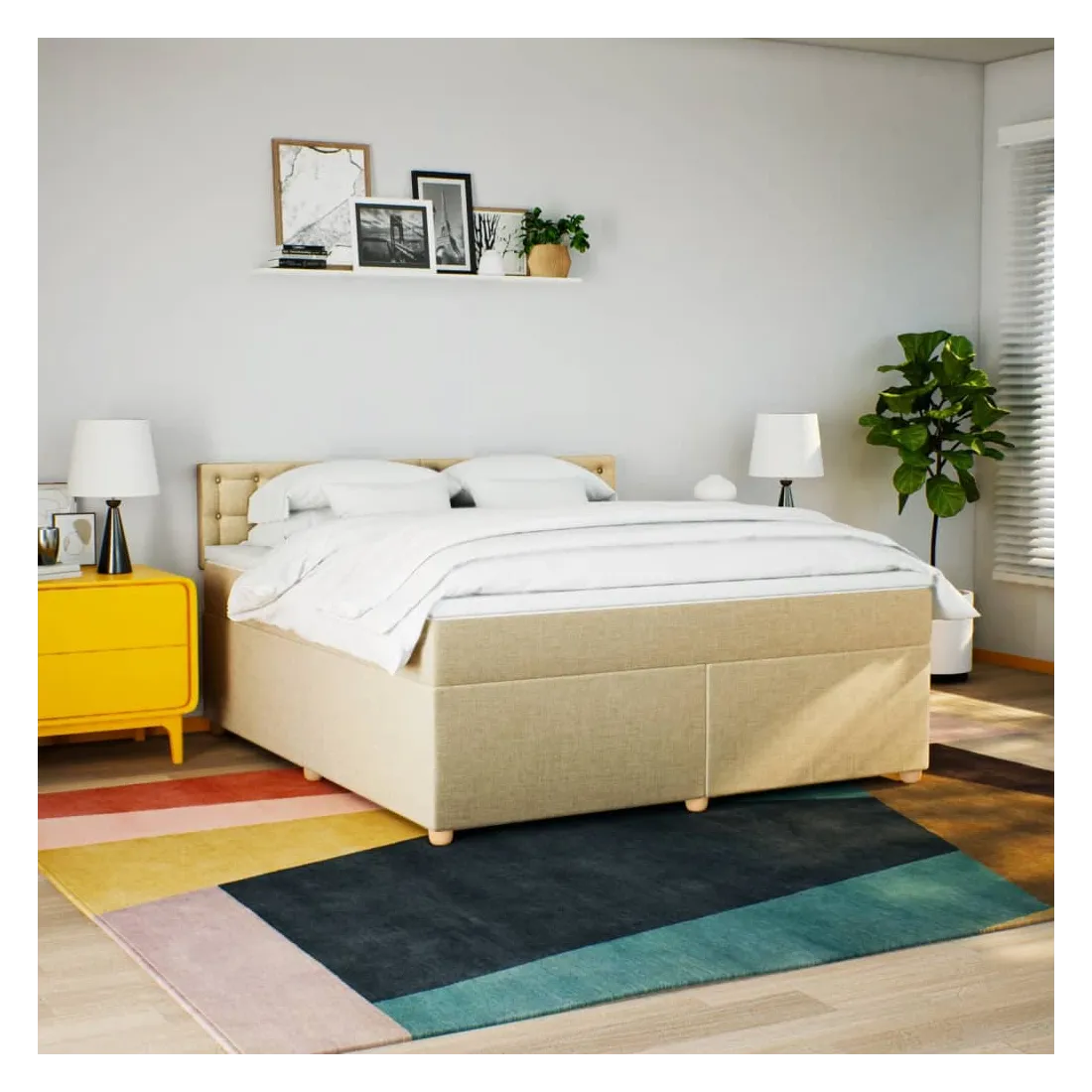 Sommier à lattes de lit avec matelas Crème 180x200 cm Tissu