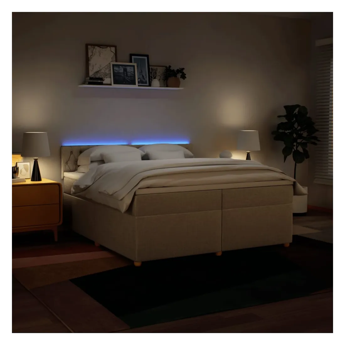 vidaXLUtilisez ce lit à sommier pour profiter d'une nuit de sommeil réparatrice ! Il vous offre une relaxation maximale et un sommeil agréable. Matériau doux et durable : le tissu en polyester allie douceur, respirabilité et durabilité, vous garantissant un confort et une convivialité ultimes.Matelas à ressorts ensachés : ce matelas à ressorts ensachés comporte des ressorts ensachés individuels qui fonctionnent indépendamment pour offrir un soutien personnalisé en réagissant uniquement à la pression exercée dans chaque zone. Cette conception empêche « l'enroulement » et réduit le transfert de mouvement par rapport aux matelas traditionnels à ressorts ouverts. Chaque ressort ensaché soutient le corps individuellement.Lumières LED pour une ambiance agréable : ce lit est équipé de lumières LED qui peuvent être facilement réglées pour créer un spectacle lumineux personnalisé. Vous pouvez personnaliser les modes, les couleurs et la luminosité pour améliorer l'ambiance de votre espace intérieur.Surmatelas confortable : ce surmatelas améliore le soutien et le confort grâce à sa surface douce et respirante, tout en prolongeant la durée de vie de votre matelas. Sa housse amovible permet un lavage facile, ce qui facilite l'entretien. Bon à savoir :Ce produit est doté d'un connecteur USB qui nécessite une source d'alimentation USB de 5V certifiée (non incluse).Pour des raisons d'hygiène, le matelas ne peut pas être retourné si l'emballage est retiré ou ouvert.Seule la partie avec un symbole de ciseaux peut être coupée et seule la partie avec l'USB continuera à fonctionner comme avant.