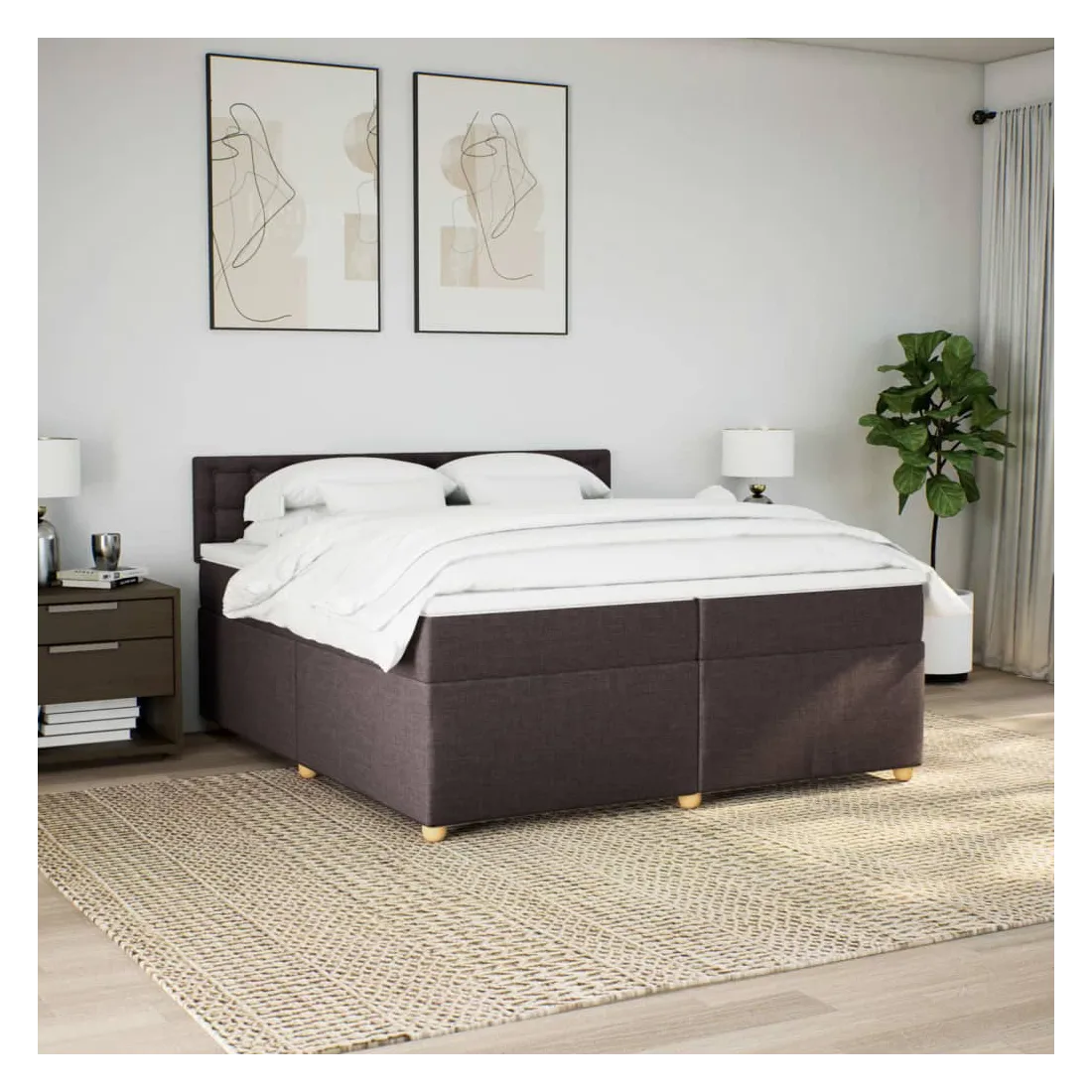 Sommier à lattes de lit avec matelas Marron foncé 200x200 cm
