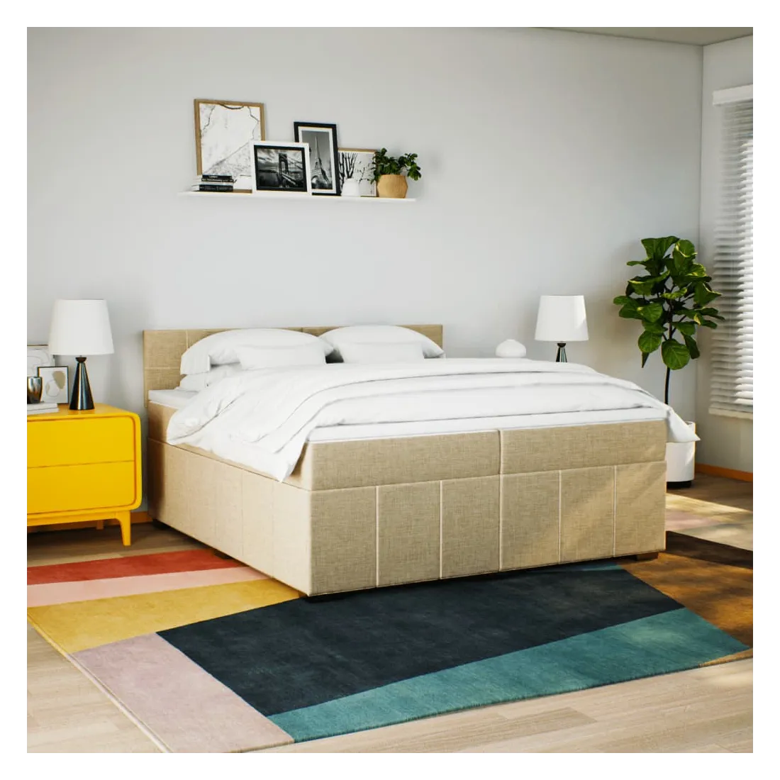 Sommier à lattes de lit avec matelas Crème 200x200 cm Tissu