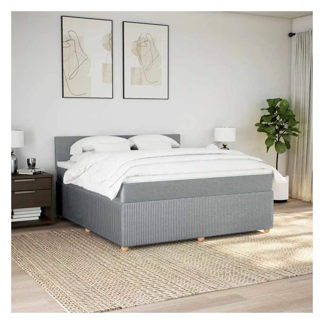 Sommier à lattes de lit avec matelas Gris clair 180x200cm Tissu