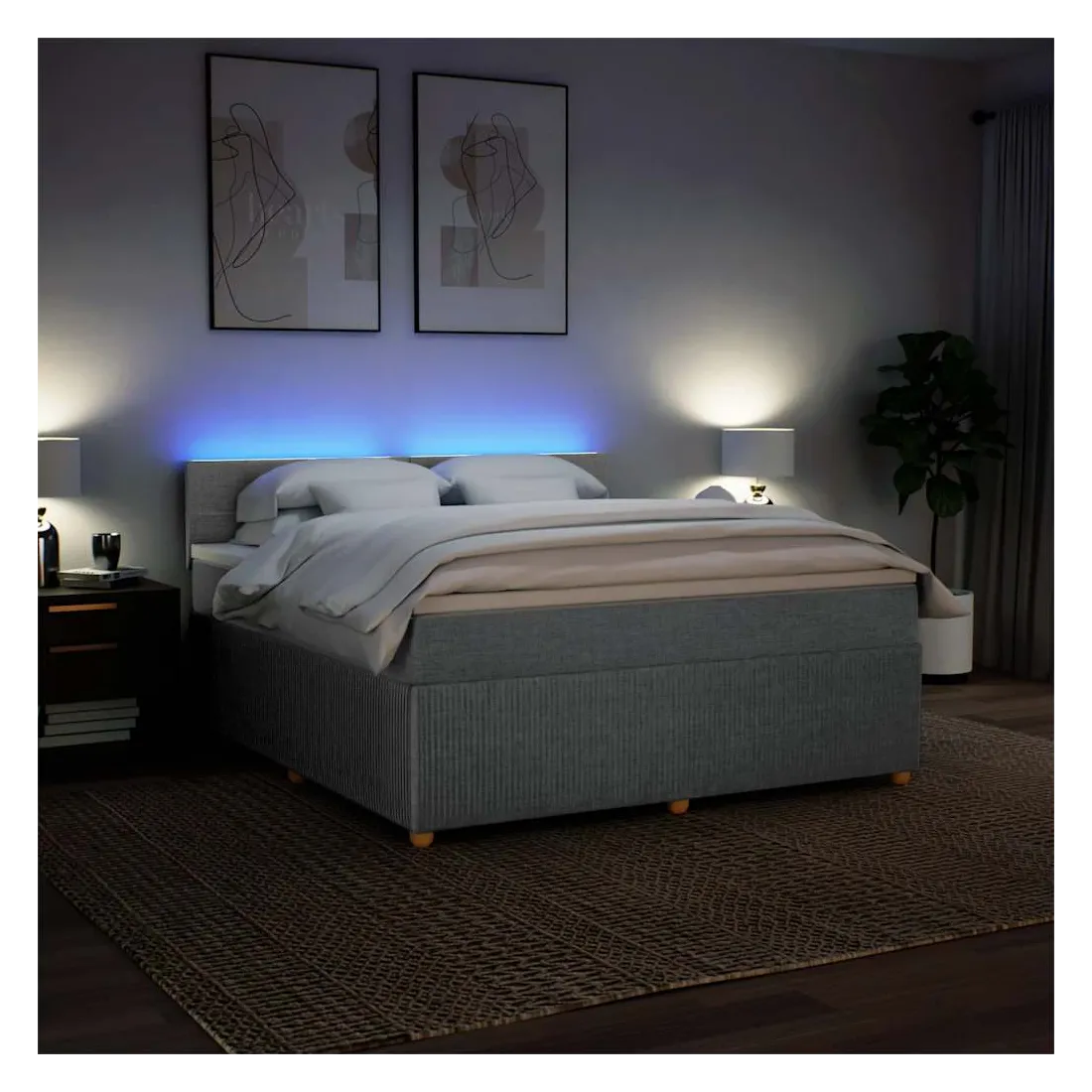 Utilisez ce lit à sommier pour profiter d'une nuit de sommeil réparatrice ! Il vous offre une relaxation maximale et un sommeil agréable. Matériau doux et durable : le tissu en polyester allie douceur, respirabilité et durabilité, vous garantissant un confort et une convivialité ultimes. Matelas à ressorts ensachés : ce matelas à ressorts ensachés comporte des ressorts ensachés individuels qui fonctionnent indépendamment pour offrir un soutien personnalisé en réagissant uniquement à la pression exercée dans chaque zone. Cette conception empêche « l'enroulement » et réduit le transfert de mouvement par rapport aux matelas traditionnels à ressorts ouverts. Chaque ressort ensaché soutient le corps individuellement. Lumières LED pour une ambiance agréable : ce lit est équipé de lumières LE