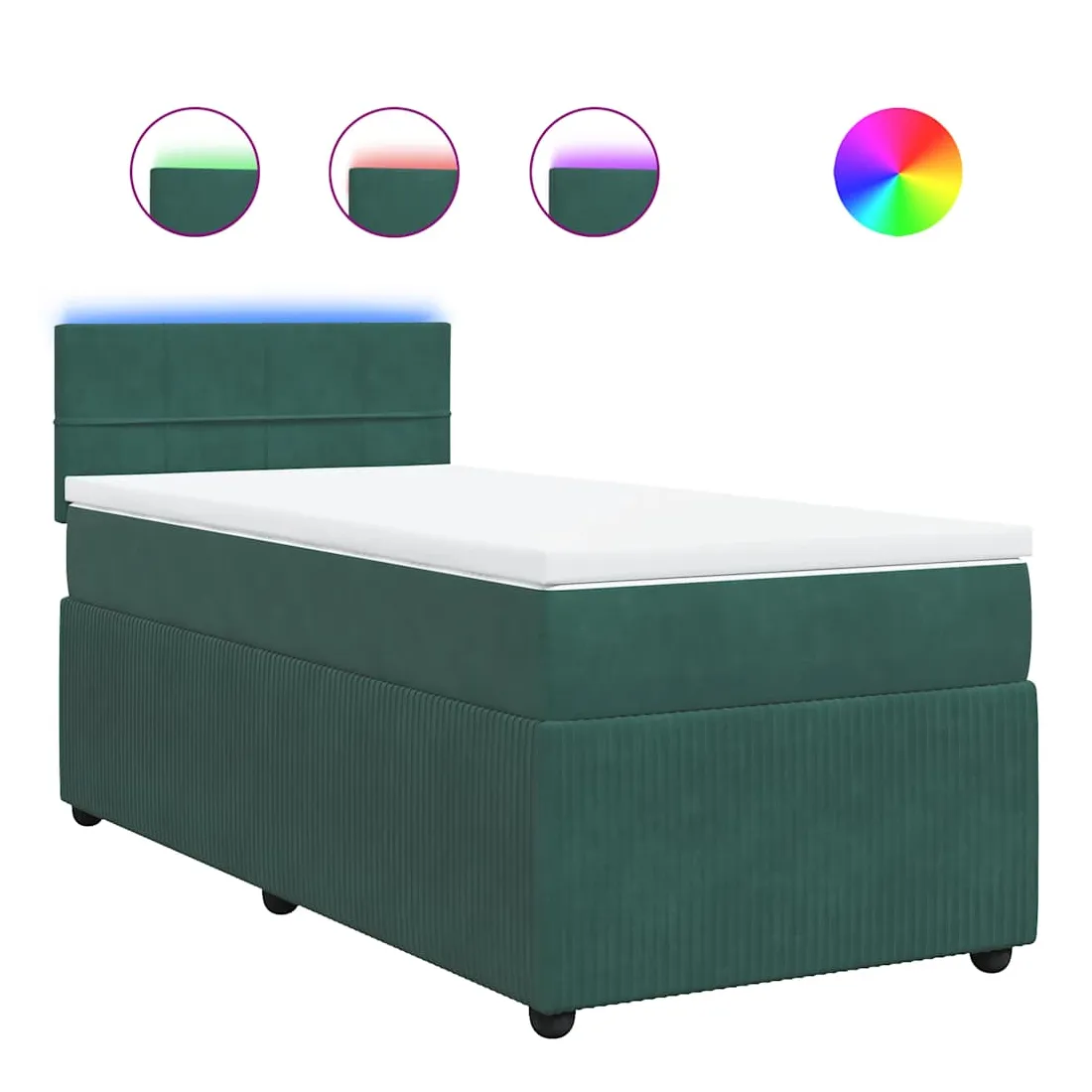 Utilisez ce lit à sommier pour profiter d'une nuit de sommeil réparatrice ! Il vous offre une relaxation maximale et un sommeil agréable. Matériau doux et confortable : le tissu en velours présente une surface douce et lisse qui offre une sensation agréable contre la peau, vous apportant chaleur et confort ultime.Matelas à ressorts ensachés : ce matelas à ressorts ensachés comporte des ressorts ensachés individuels qui fonctionnent indépendamment pour offrir un soutien personnalisé en réagissant uniquement à la pression exercée dans chaque zone. Cette conception empêche « l'enroulement » et réduit le transfert de mouvement par rapport aux matelas traditionnels à ressorts ouverts. Chaque ressort ensaché soutient le corps individuellement.Lumières LED pour une ambiance agréable : ce lit est équipé de lumières LED qui peuvent être facilement réglées pour créer un spectacle lumineux personnalisé. Vous pouvez personnaliser les modes, les couleurs et la luminosité pour améliorer l'ambiance de votre espace intérieur.Surmatelas confortable : ce surmatelas améliore le soutien et le confort grâce à sa surface douce et respirante, tout en prolongeant la durée de vie de votre matelas. Sa housse amovible permet un lavage facile, ce qui facilite l'entretien. Bon à savoir :Ce produit est doté d'un connecteur USB qui nécessite une source d'alimentation USB de 5V certifiée (non incluse).Pour des raisons d'hygiène, le matelas ne peut pas être retourné si l'emballage est retiré ou ouvert.Seule la partie avec un symbole de ciseaux peut être coupée et seule la partie avec l'USB continuera à fonctionner comme avant.