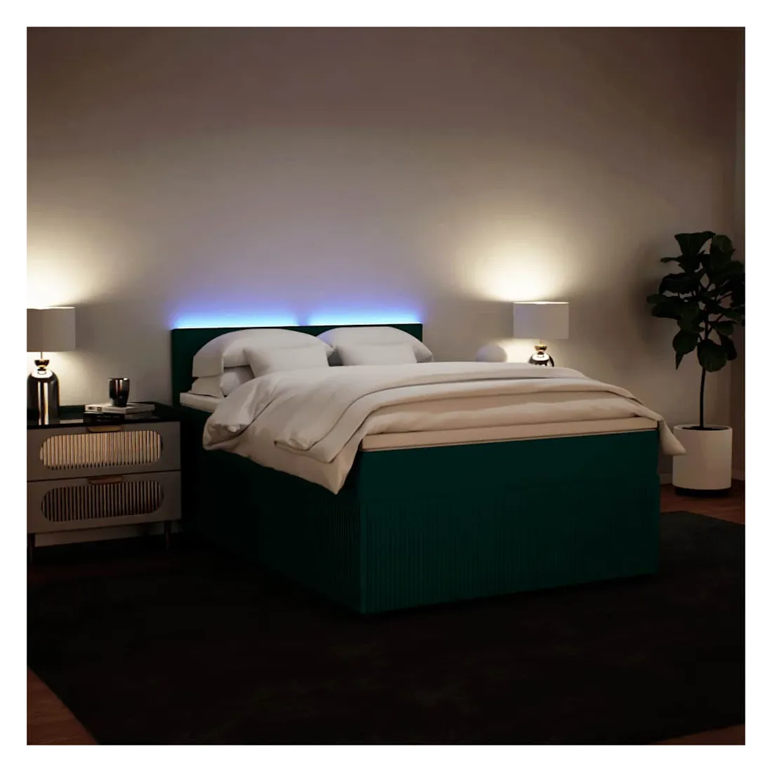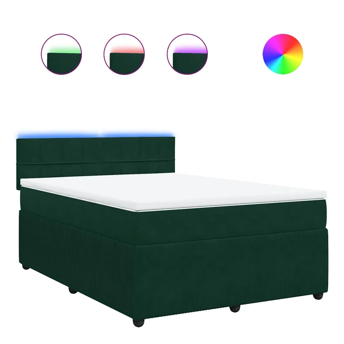 Utilisez ce lit à sommier pour profiter d'une nuit de sommeil réparatrice ! Il vous offre une relaxation maximale et un sommeil agréable. Matériau doux et confortable : le tissu en velours présente une surface douce et lisse qui offre une sensation agréable contre la peau, vous apportant chaleur et confort ultime.Matelas à ressorts ensachés : ce matelas à ressorts ensachés comporte des ressorts ensachés individuels qui fonctionnent indépendamment pour offrir un soutien personnalisé en réagissant uniquement à la pression exercée dans chaque zone. Cette conception empêche « l'enroulement » et réduit le transfert de mouvement par rapport aux matelas traditionnels à ressorts ouverts. Chaque ressort ensaché soutient le corps individuellement.Lumières LED pour une ambiance agréable : ce lit est équipé de lumières LED qui peuvent être facilement réglées pour créer un spectacle lumineux personnalisé. Vous pouvez personnaliser les modes, les couleurs et la luminosité pour améliorer l'ambiance de votre espace intérieur.Surmatelas confortable : ce surmatelas améliore le soutien et le confort grâce à sa surface douce et respirante, tout en prolongeant la durée de vie de votre matelas. Sa housse amovible permet un lavage facile, ce qui facilite l'entretien. Bon à savoir :Ce produit est doté d'un connecteur USB qui nécessite une source d'alimentation USB de 5V certifiée (non incluse).Pour des raisons d'hygiène, le matelas ne peut pas être retourné si l'emballage est retiré ou ouvert.Seule la partie avec un symbole de ciseaux peut être coupée et seule la partie avec l'USB continuera à fonctionner comme avant.