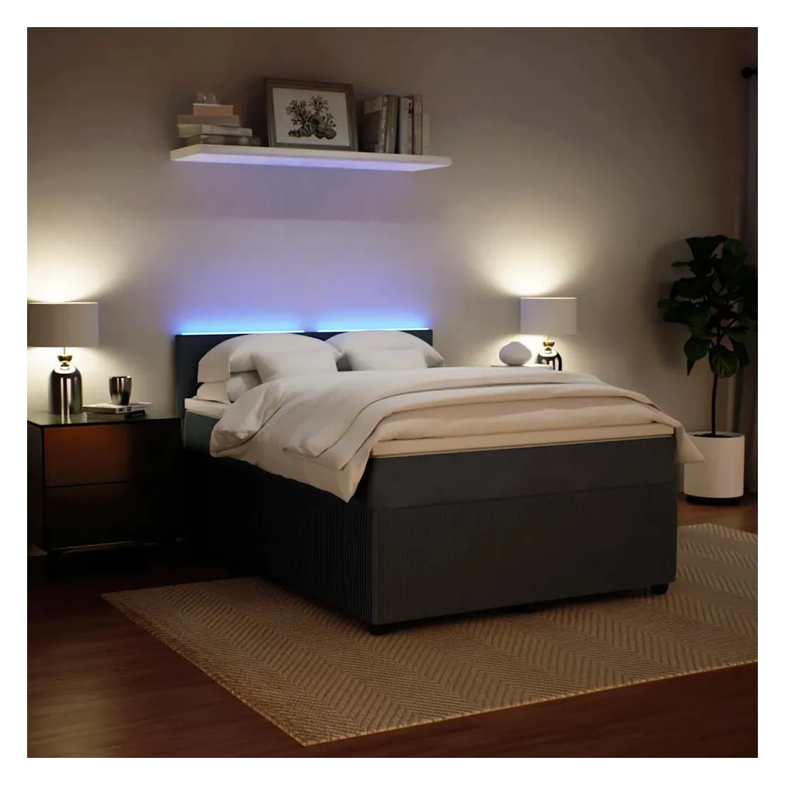 Utilisez ce lit à sommier pour profiter d'une nuit de sommeil réparatrice ! Il vous offre une relaxation maximale et un sommeil agréable. Matériau doux et confortable : le tissu en velours présente une surface douce et lisse qui offre une sensation agréable contre la peau, vous apportant chaleur et confort ultime.Matelas à ressorts ensachés : ce matelas à ressorts ensachés comporte des ressorts ensachés individuels qui fonctionnent indépendamment pour offrir un soutien personnalisé en réagissant uniquement à la pression exercée dans chaque zone. Cette conception empêche « l'enroulement » et réduit le transfert de mouvement par rapport aux matelas traditionnels à ressorts ouverts. Chaque ressort ensaché soutient le corps individuellement.Lumières LED pour une ambiance agréable : ce lit est équipé de lumières LED qui peuvent être facilement réglées pour créer un spectacle lumineux personnalisé. Vous pouvez personnaliser les modes, les couleurs et la luminosité pour améliorer l'ambiance de votre espace intérieur.Surmatelas confortable : ce surmatelas améliore le soutien et le confort grâce à sa surface douce et respirante, tout en prolongeant la durée de vie de votre matelas. Sa housse amovible permet un lavage facile, ce qui facilite l'entretien. Bon à savoir :Ce produit est doté d'un connecteur USB qui nécessite une source d'alimentation USB de 5V certifiée (non incluse).Pour des raisons d'hygiène, le matelas ne peut pas être retourné si l'emballage est retiré ou ouvert.Seule la partie avec un symbole de ciseaux peut être coupée et seule la partie avec l'USB continuera à fonctionner comme avant.