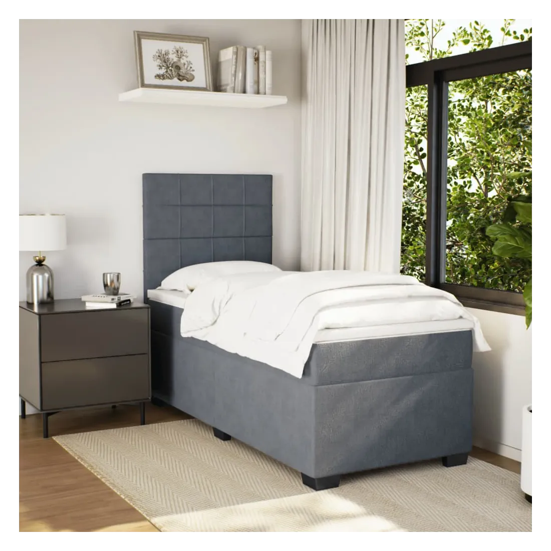 Utilisez ce lit à sommier pour profiter d'une nuit de sommeil réparatrice ! Il vous offre une relaxation maximale et un sommeil agréable. Matériau doux et confortable : le tissu en velours présente une surface douce et lisse qui offre une sensation agréable contre la peau, vous apportant chaleur et confort ultime.Matelas à ressorts ensachés : ce matelas à ressorts ensachés comporte des ressorts ensachés individuels qui fonctionnent indépendamment pour offrir un soutien personnalisé en réagissant uniquement à la pression exercée dans chaque zone. Cette conception empêche « l'enroulement » et réduit le transfert de mouvement par rapport aux matelas traditionnels à ressorts ouverts. Chaque ressort ensaché soutient le corps individuellement.Tête de lit réglable en hauteur : la tête de lit est réglable en hauteur pour s'adapter à vos préférences.Surmatelas confortable : ce surmatelas améliore le soutien et le confort grâce à sa surface douce et respirante, tout en prolongeant la durée de vie de votre matelas. Sa housse amovible permet un lavage facile, ce qui facilite l'entretien.Lattes pour un soutien optimal : le cadre de lit est complété par des lattes pour offrir un soutien et une respirabilité essentiels à votre matelas. Bon à savoir :Pour des raisons d'hygiène, le matelas ne peut pas être retourné si l'emballage est retiré ou ouvert.