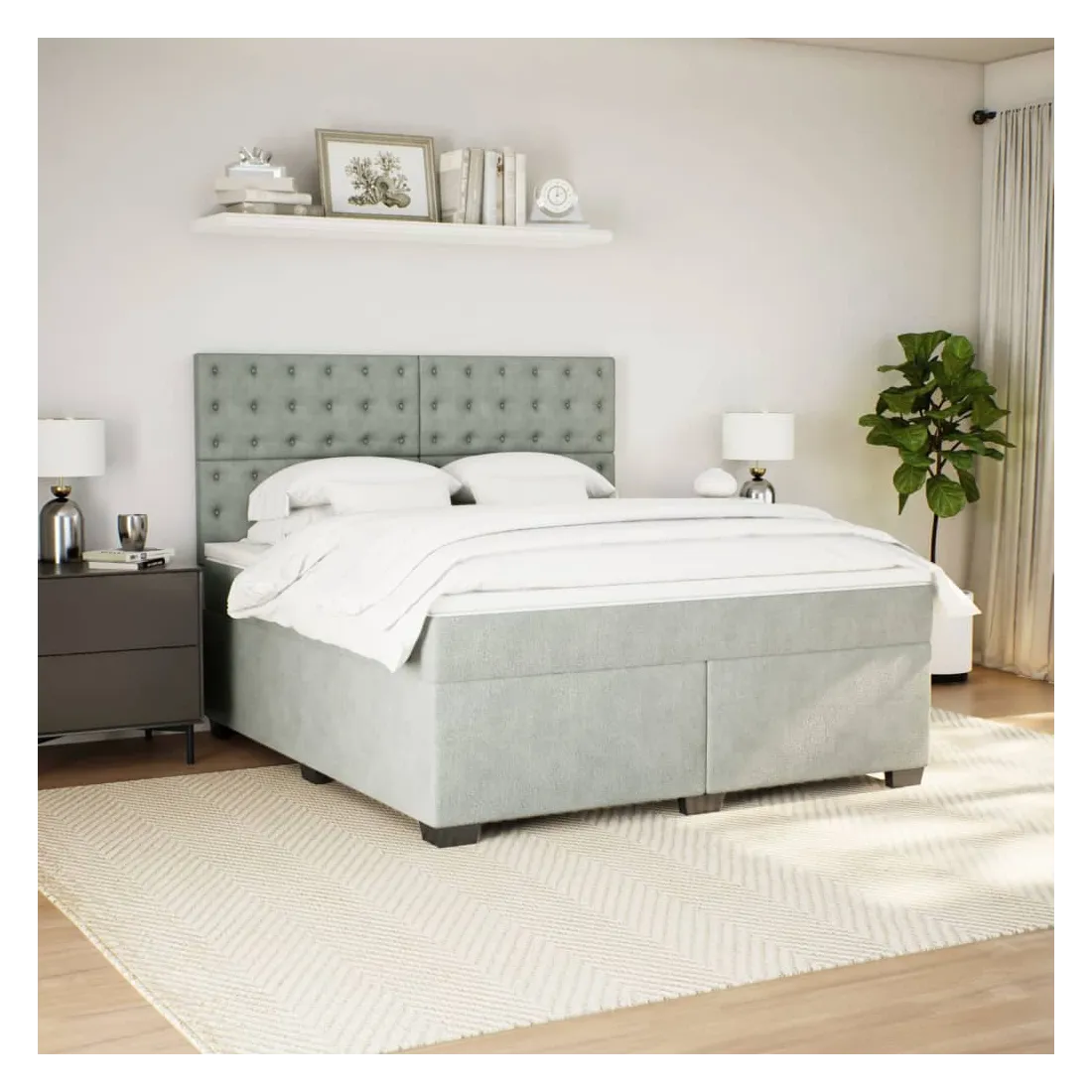 Utilisez ce lit à sommier pour profiter d'une nuit de sommeil réparatrice ! Il vous offre une relaxation maximale et un sommeil agréable. Matériau doux et confortable : le tissu en velours présente une surface douce et lisse qui offre une sensation agréable contre la peau, vous apportant chaleur et confort ultime.Matelas à ressorts ensachés : ce matelas à ressorts ensachés comporte des ressorts ensachés individuels qui fonctionnent indépendamment pour offrir un soutien personnalisé en réagissant uniquement à la pression exercée dans chaque zone. Cette conception empêche « l'enroulement » et réduit le transfert de mouvement par rapport aux matelas traditionnels à ressorts ouverts. Chaque ressort ensaché soutient le corps individuellement.Tête de lit réglable en hauteur : la tête de lit est réglable en hauteur pour s'adapter à vos préférences.Surmatelas confortable : ce surmatelas améliore le soutien et le confort grâce à sa surface douce et respirante, tout en prolongeant la durée de vie de votre matelas. Sa housse amovible permet un lavage facile, ce qui facilite l'entretien.Lattes pour un soutien optimal : le cadre de lit est complété par des lattes pour offrir un soutien et une respirabilité essentiels à votre matelas. Bon à savoir :Pour des raisons d'hygiène, le matelas ne peut pas être retourné si l'emballage est retiré ou ouvert.