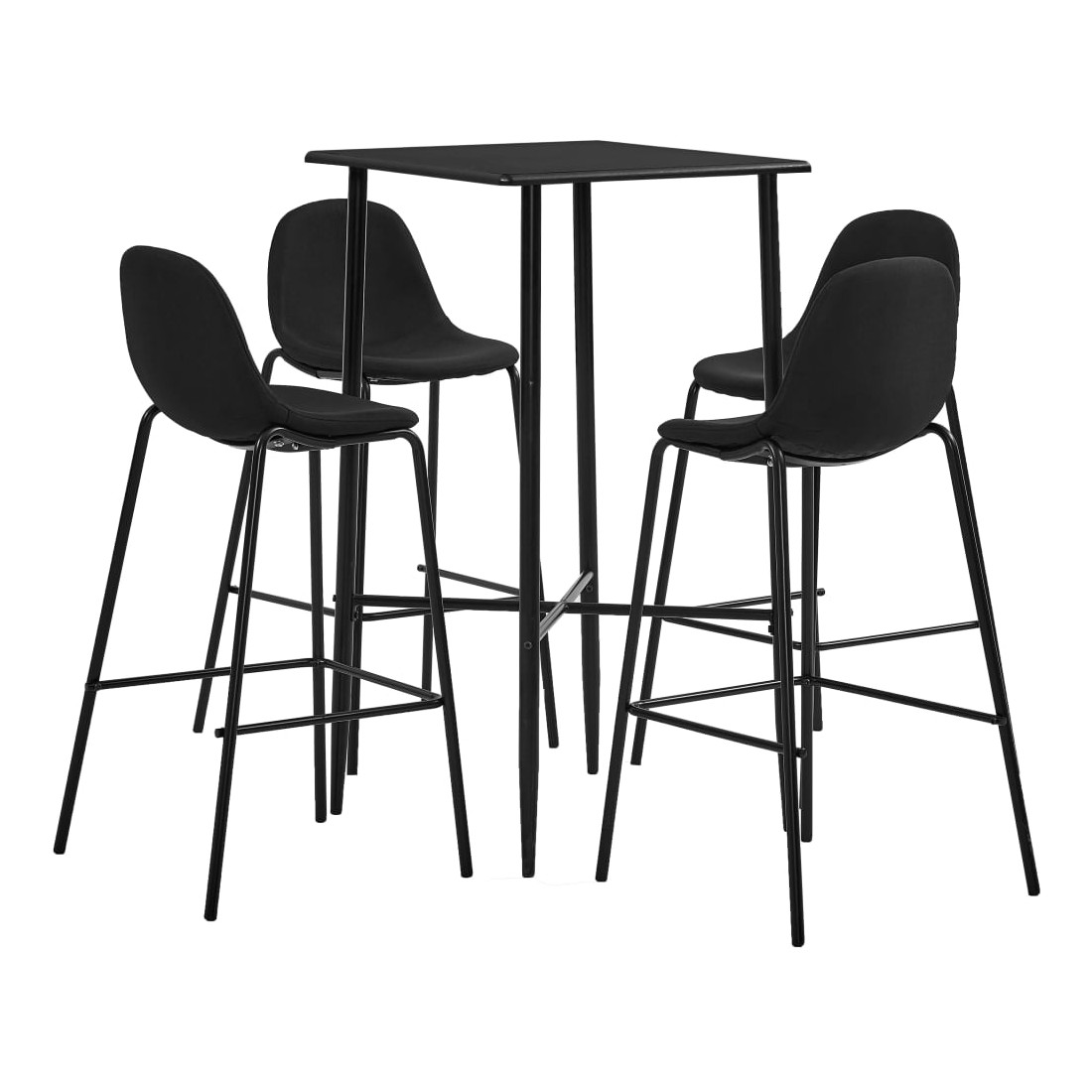 Avec un design moderne et contemporain, notre ensemble de bar est idéal pour les maisons, jardins, bars, pubs ou restaurants modernes. Son design épuré et contemporain complétera toute décoration intérieure. Le dessus de table est en MDF qui est facile à nettoyer. Le cadre en acier enduit de poudre ajoute à la stabilité et à la solidité de la table de bar. Les chaises de bar ont une assise ergonomique avec dossier intégré dans un look moderne et courbé. De plus, elles sont faciles à monter. Notre ensemble de bar est idéal pour savourer un verre de vin au bar, manger quelque chose au comptoir ou pour l'utiliser comme siège supplémentaire lorsque vous avez des invités. La livraison comprend une table de bar et 4 chaises de bar.