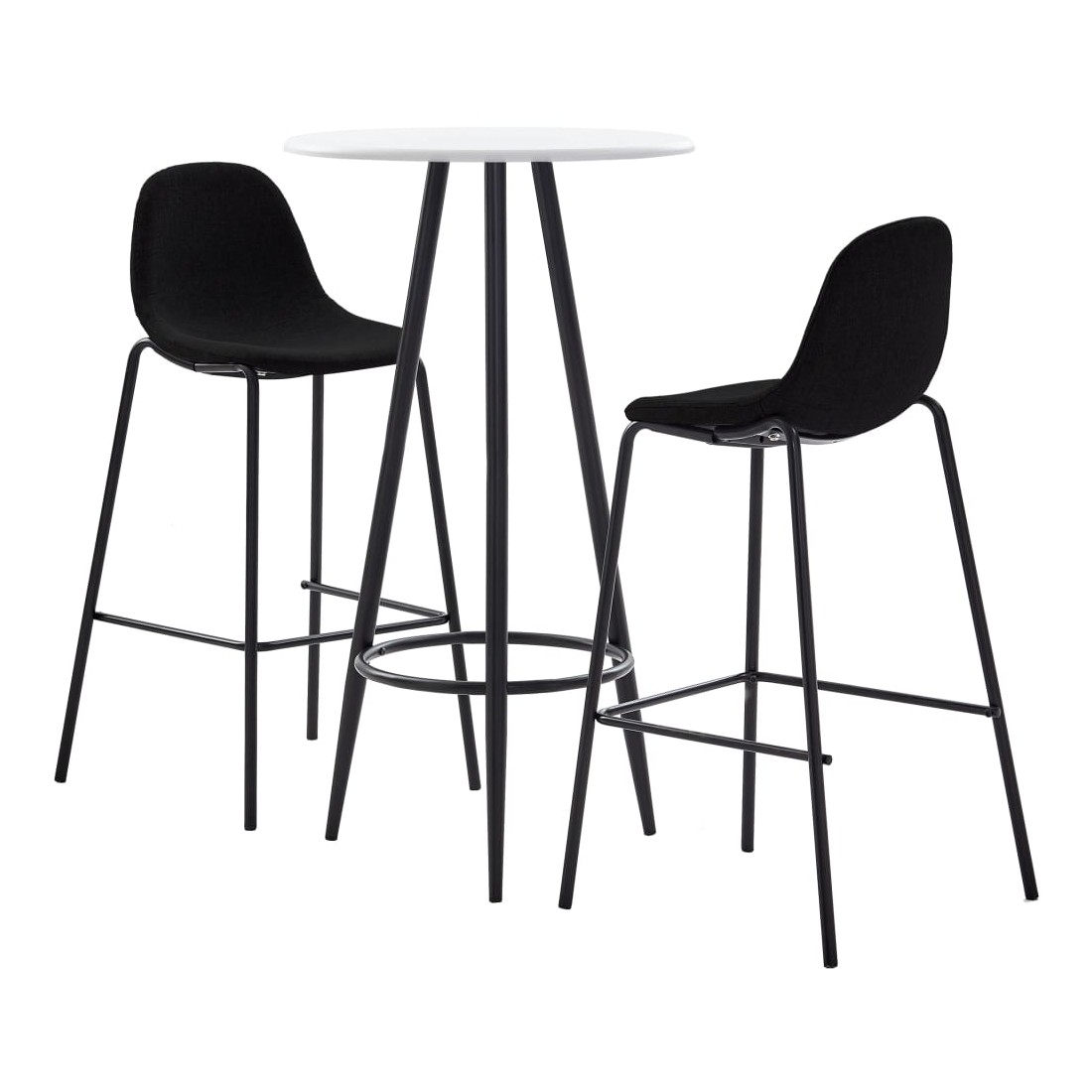 Avec un design moderne et contemporain, notre ensemble de bar est idéal pour les maisons, jardins, bars, pubs ou restaurants modernes. Son design épuré et contemporain complétera toute décoration intérieure. Le dessus de table est en MDF qui est facile à nettoyer. Le cadre en acier enduit de poudre ajoute à la stabilité et à la solidité de la table de bar. Les chaises de bar ont une assise ergonomique avec dossier intégré dans un look moderne et courbé. De plus, elles sont faciles à monter. Notre ensemble de bar est idéal pour savourer un verre de vin au bar, manger quelque chose au comptoir ou pour l'utiliser comme siège supplémentaire lorsque vous avez des invités. La livraison comprend une table de bar et 2 chaises de bar.
