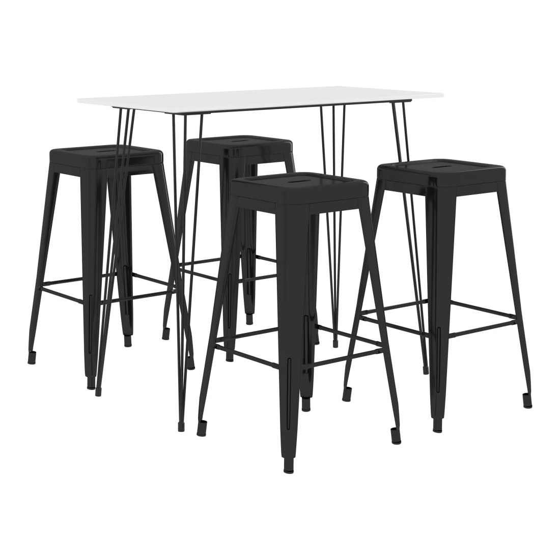 Avec un design moderne et contemporain, notre ensemble de bar est idéal pour les maisons, jardins, bars, pubs ou restaurants modernes. Son design épuré et contemporain complétera toute décoration intérieure. Le dessus de table est en MDF, facile à nettoyer. Le cadre métallique enduit de poudre ajoute à la stabilité et à la robustesse de la table de bar. Les tabourets de pub sont fabriqués en métal avec une finition peinte, ce qui les rend solides et durables. La barre transversale renforcée sous le siège et le repose-pied renforce la stabilité, ce tabouret de comptoir peut être empilé pour un rangement facile, ce qui est idéal pour un espace limité.