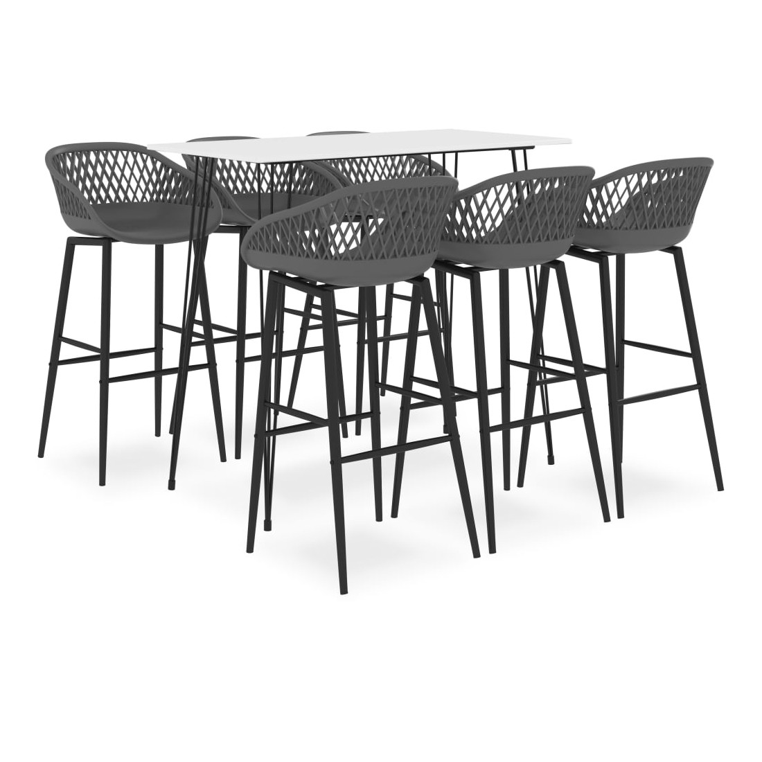 Avec un design moderne et contemporain, notre ensemble de bar est idéal pour les maisons, jardins, bars, pubs ou restaurants modernes. Son design épuré et contemporain complétera toute décoration intérieure. Le dessus de table est en MDF, facile à nettoyer. Le cadre métallique enduit de poudre ajoute à la stabilité et à la robustesse de la table de bar. Les tabourets de bar ont un siège ergonomique avec un dossier bas intégré avec un aspect de maille. Fabriquées en PP robuste et soutenues par des solides pieds en métal enduit de poudre, ces chaises de comptoir sont robustes et durables.