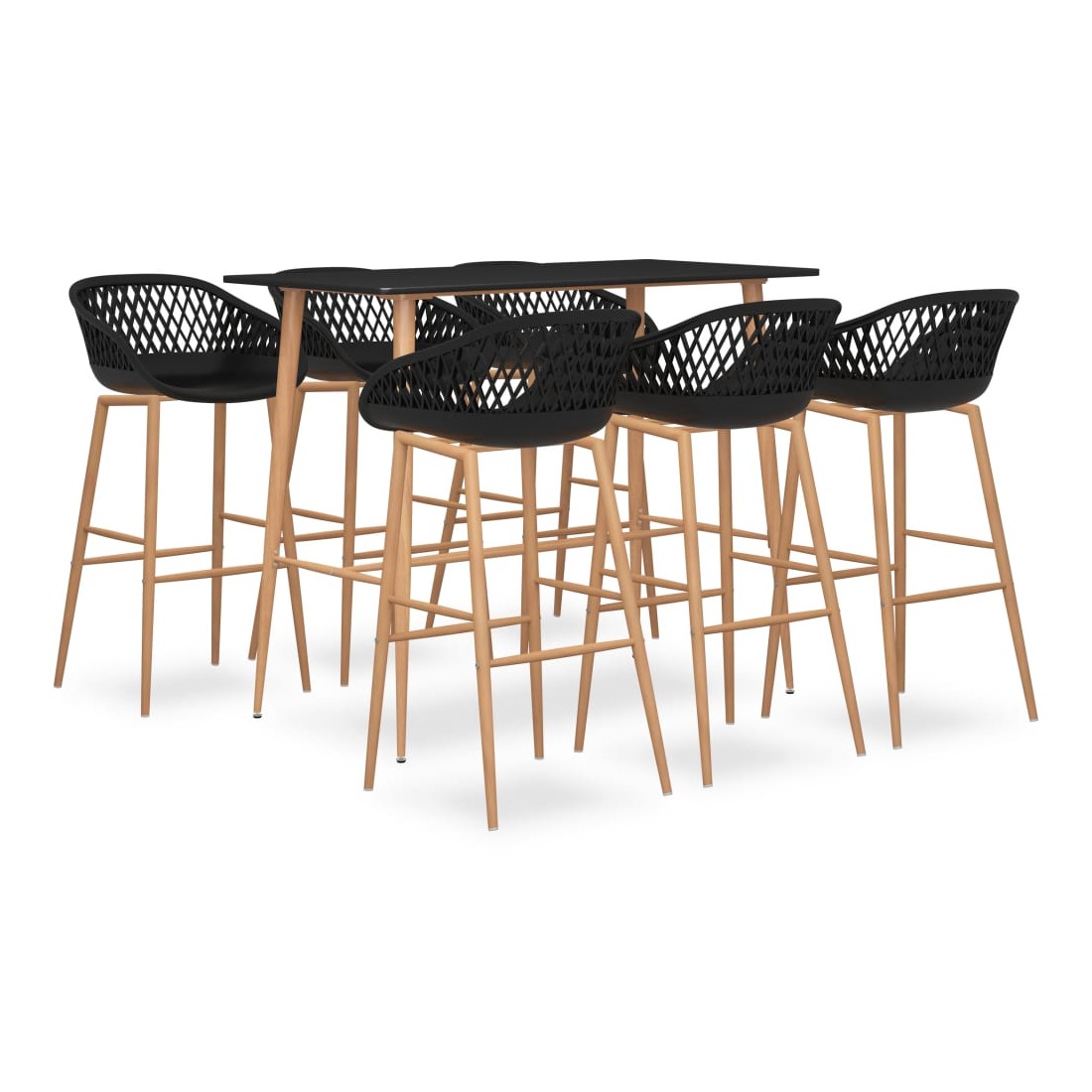 Avec un design moderne et contemporain, notre ensemble de bar est idéal pour les maisons, jardins, bars, pubs ou restaurants modernes. Son design épuré et contemporain complétera toute décoration intérieure. Notre table de comptoir dispose d’un dessus en MDF durable et de solides pieds en métal avec un aspect de bois. Les tabourets de bar ont un siège ergonomique avec un dossier bas intégré avec un aspect de maille. Fabriquées en PP robuste et soutenues par des solides pieds en métal avec une impression par transfert de chaleur en aspect bois, ces chaises de comptoir sont robustes et durables.