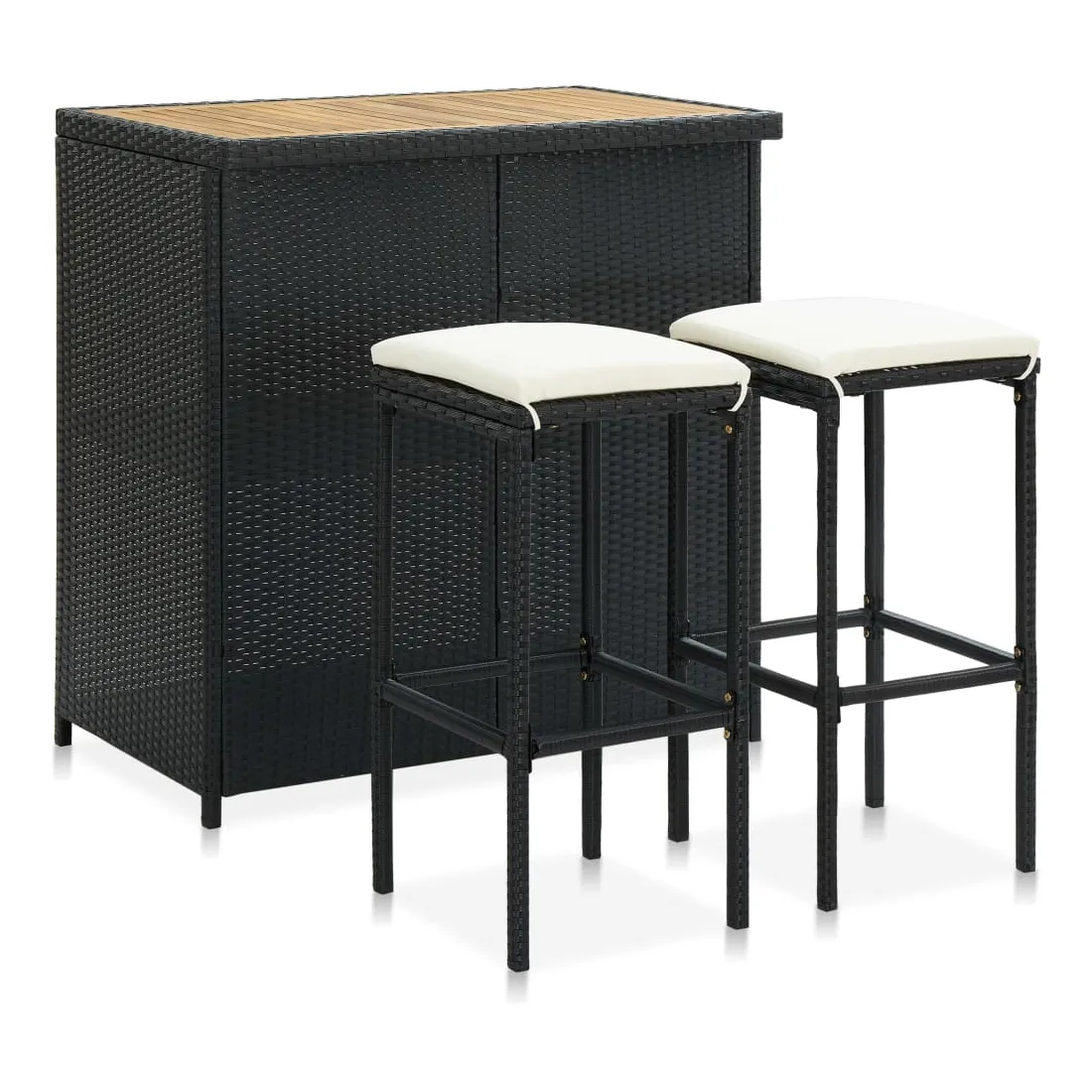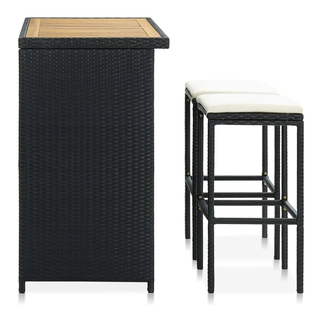 Discutez avec vos amis ou prenez un verre tout en vous relaxant sur cet élégant ensemble de bar ! Cet ensemble de bistro dispose d’un cadre en acier solide, ce qui le rend stable. La résine tressée est durable et résistante aux intempéries, ce qui la rend adaptée à une utilisation quotidienne. Le dessus de table en bois d’acacia massif peut être utilisé pour mettre vos boissons ou collations. Cet ensemble de pub est facile à déplacer, grâce à sa construction légère. Le coussin d’assise et le repose-pied intégré ajoutent également un confort d'assise supplémentaire au tabouret. La housse de coussin en polyester facile à nettoyer avec fermeture éclair dissimulée peut être enlevée et lavée. La table de bar dispose également de deux étagères pour un espace de rangement suffisant pour garder vos articles essentiels organisés et à portée de main.