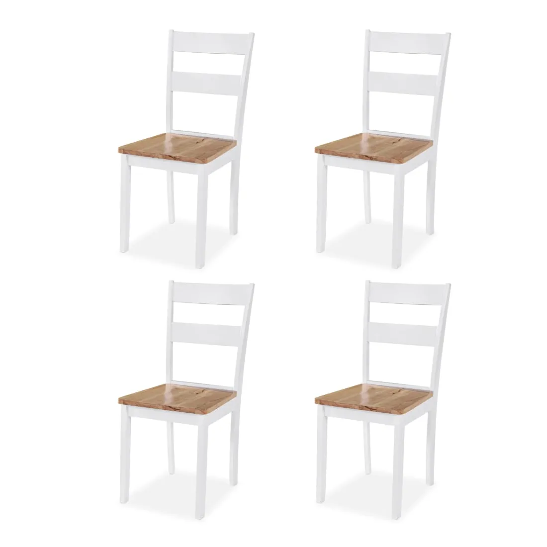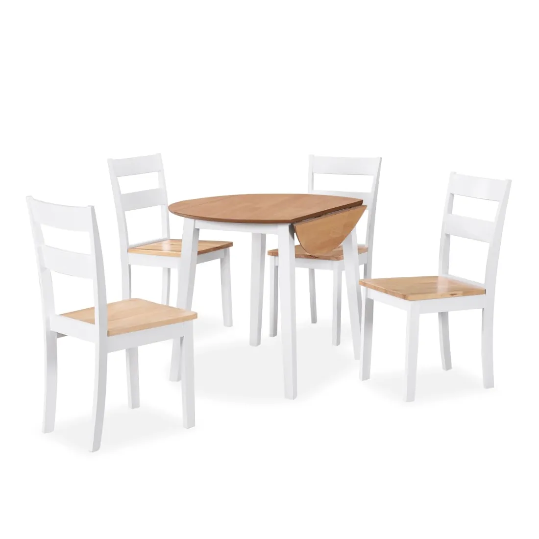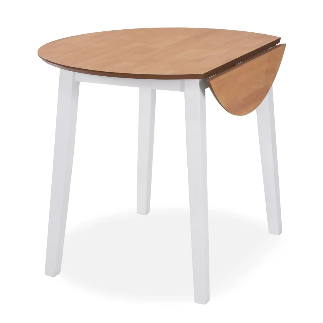 Cet ensemble de salle à manger se compose d'1 table et de 4 chaises. Ce n'est pas seulement esthétique, mais aussi très pratique et confortable. Ce sera un excellent choix pour votre salle à manger. Cet ensemble a un design classique en bois blanc et naturel sophistiqué. Le MDF facilite le nettoyage de la surface de la table et le bois d'hévéa massif rend les pieds plus stables. Le bois d'hévéa a reçu une finition à peinture pour lui donner une couleur riche et chaude. Les côtés de la table à abattant peuvent être rabattus et les chaises peuvent être cachées sous la table lorsqu'elles ne sont pas utilisées pour gagner d'espace. L'assemblage est facile.