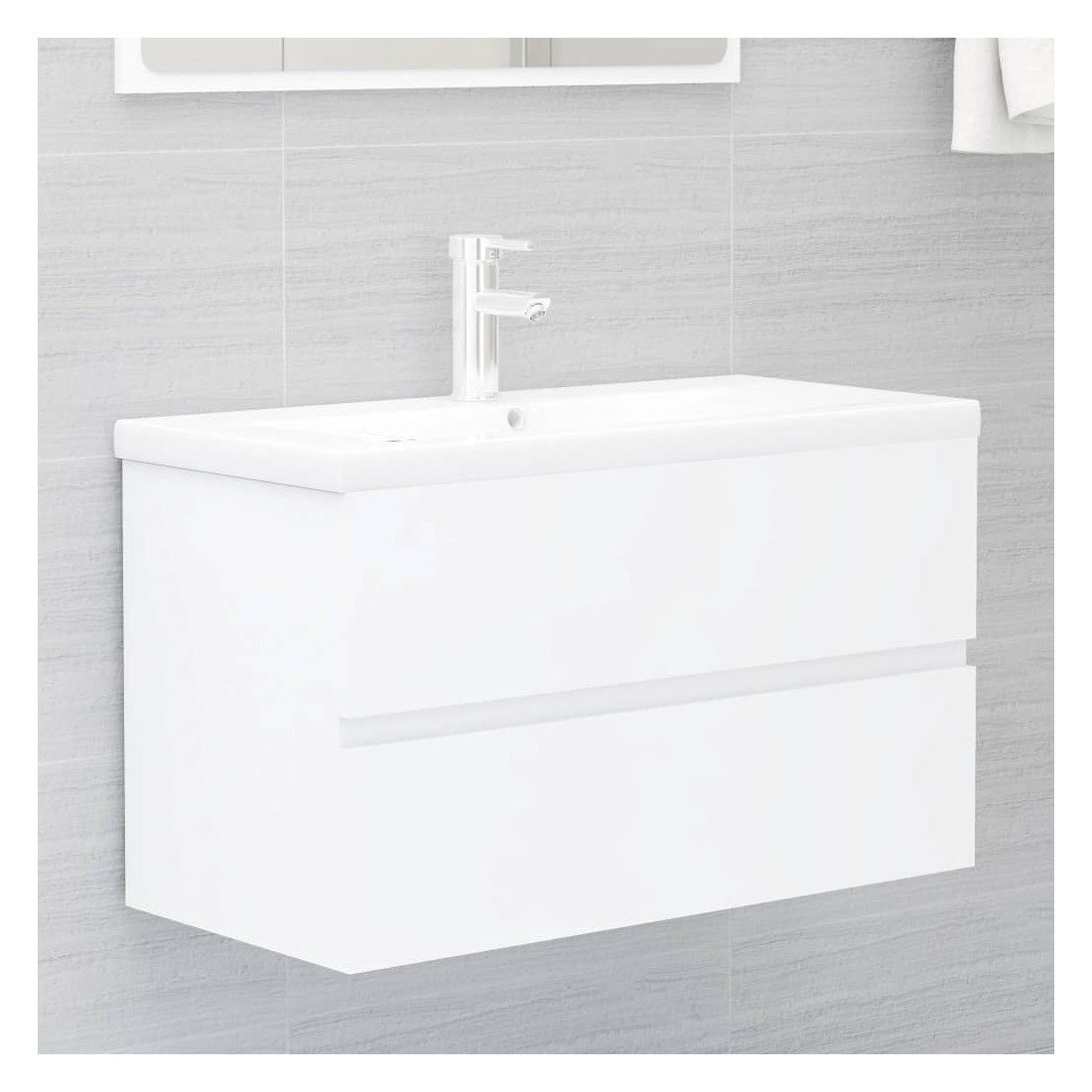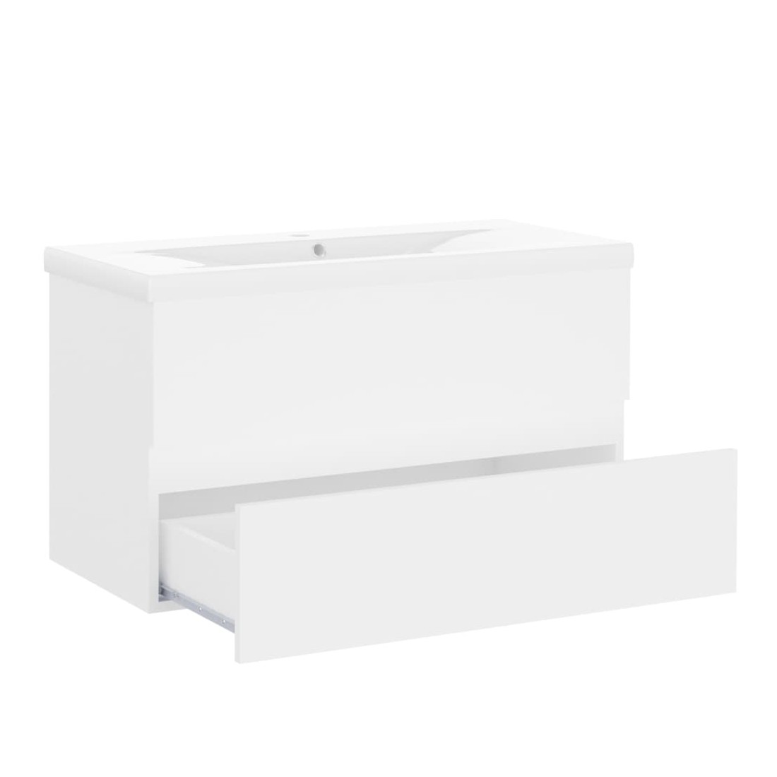 Cette armoire d'évier avec lavabo intégré s'agence parfaitement à votre salle de bain ou toilette avec un aspect saisissant et bien rangé. L'armoire de rangement comprend 1 tiroir, offrant un espace de rangement suffisant pour ranger les objets de votre salle de bain. Elle s'intègre parfaitement sous l'évier et rend le rangement de la salle de bain très pratique. Fabriqué en céramique, le lavabo peut non seulement servir de récipient pour un usage quotidien, mais également d'ornement dans votre espace de vie. Grâce à son design avant-gardiste et contemporain, ce lavabo s'adaptera à n'importe quel décor. Un trop-plein est également équipé pour vidanger l'eau lorsqu'il est trop plein. Sa surface vitrée lui confère un design à la fois moderne et élégant. De plus, l'armoire et le lavabo sont faciles à nettoyer avec un chiffon humide. Remarque : le robinet et le vidange ne sont pas inclus dans la livraison.