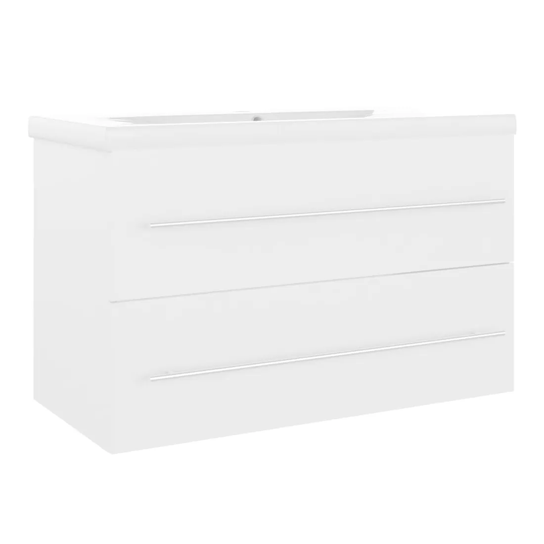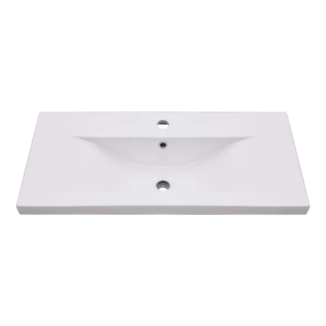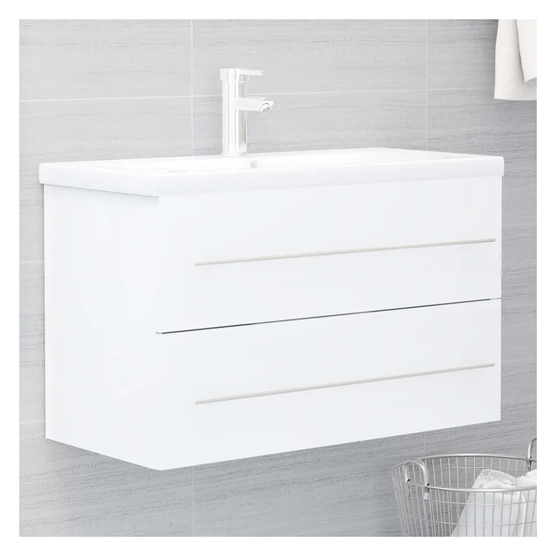 Cette armoire d'évier avec lavabo intégré s'agence parfaitement à votre salle de bain ou toilette avec un aspect saisissant et bien rangé. L'armoire est en aggloméré, ce qui la rend robuste et stable. L'armoire de rangement a 1 tiroir, offrant un espace de rangement suffisant pour ranger les objets de votre salle de bain. Elle s'intègre parfaitement sous l'évier et rend le rangement de la salle de bain très pratique. Fabriqué en céramique, le lavabo peut non seulement servir de récipient pour un usage quotidien, mais également d'ornement dans votre espace de vie. Grâce à son design avant-gardiste et contemporain, ce lavabo s'adaptera à n'importe quel décor. Un trop-plein est également équipé pour vidanger l'eau lorsqu'il est trop plein. Sa surface vitrée lui confère un design à la fois moderne et élégant. De plus, l'armoire et le lavabo sont faciles à nettoyer avec un chiffon humide. Veuillez noter que le robinet et le drain ne sont pas inclus dans la livraison.