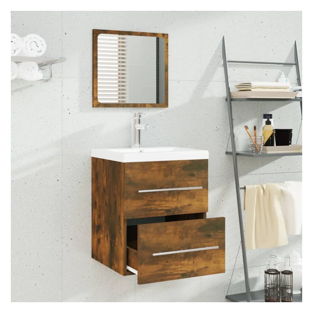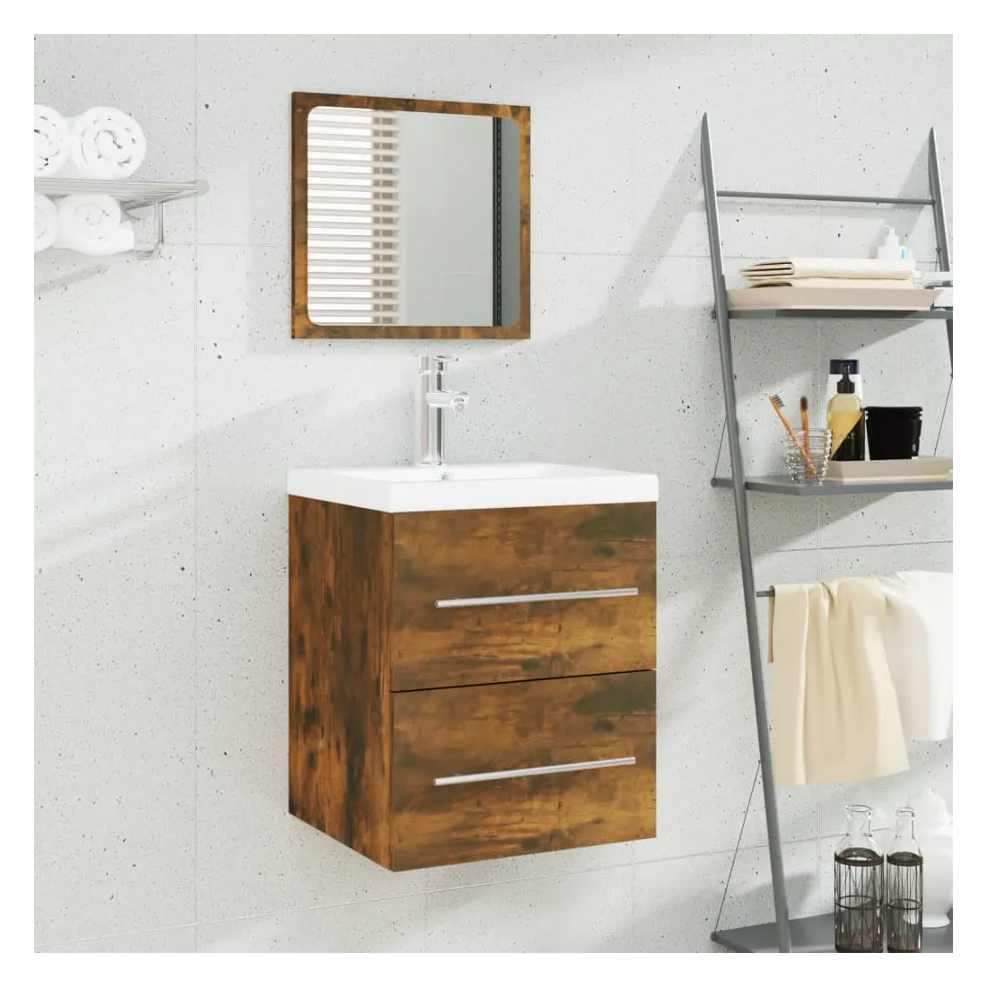 Meuble lavabo avec bassin intégré Chêne fumé Bois d'ingénierie
