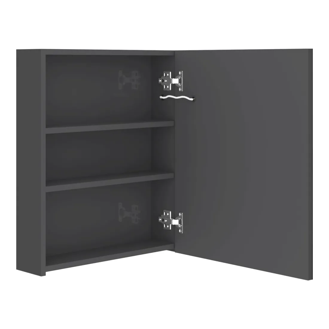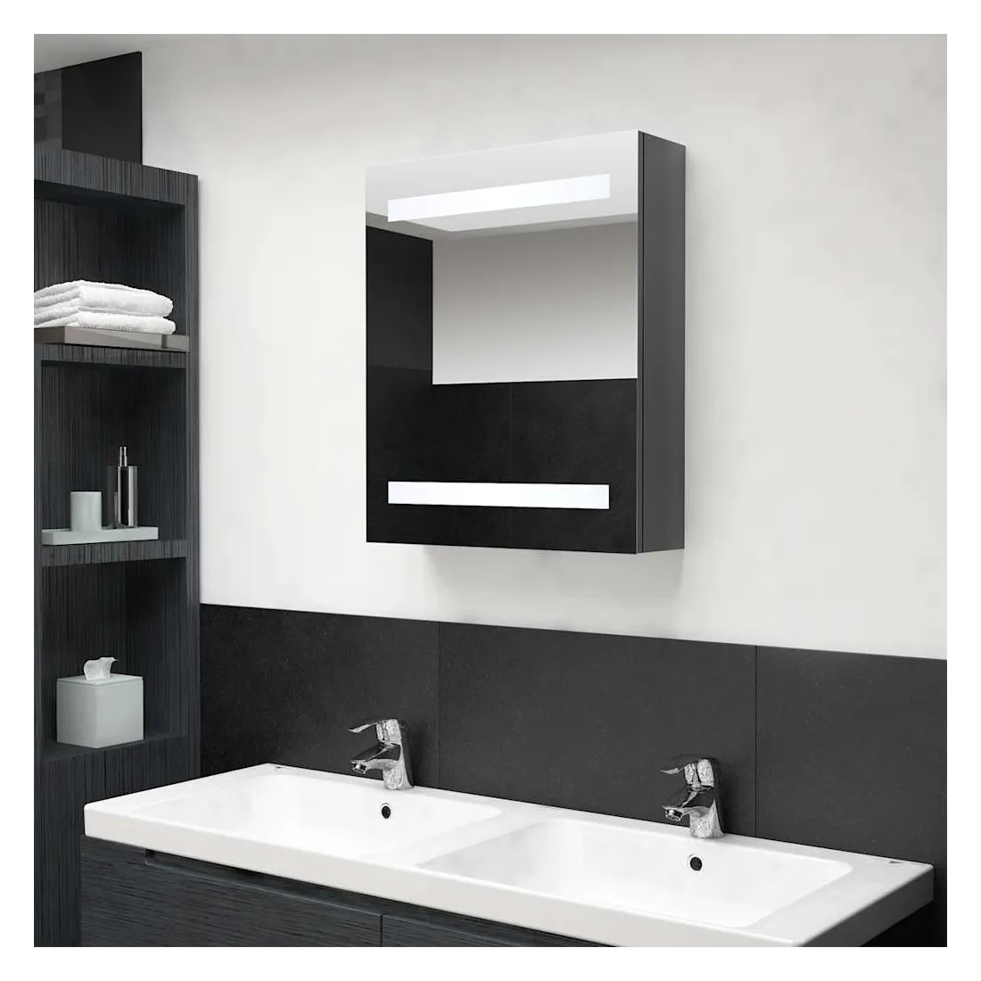 Introduisez une esthétique agréable dans votre salle de bain avec cette armoire à miroir à LED ! Cette armoire à miroir murale à LED ajoute une touche de style contemporain et une lumière douce et éclairante à toute pièce ! Cette armoire murale est fabriquée en panneaux MDF avec une finition mélaminée, garantissant une utilisation à long terme. Grâce aux deux bandes lumineuses à LED écoénergétiques, vous pouvez vous voir sous la lumière la plus pure pour le maquillage, les soins de la peau et les soins de la peau. Elle illumine votre pièce, votre visage et votre sourire. À l’intérieur, vous trouverez 3 étagères offrant un espace de rangement suffisant pour tous vos articles de toilette et accessoires de beauté. Vous pouvez facilement allumer/éteindre la lumière avec le bouton au fond. Élégant et fonctionnel, ce meuble saura sûrement rendre le design de votre pièce à l’origine exceptionnel ! Remarque :Ce produit est doté d'un connecteur USB, mais la source d'alimentation certifiée de USB 5V n'est pas incluse.
