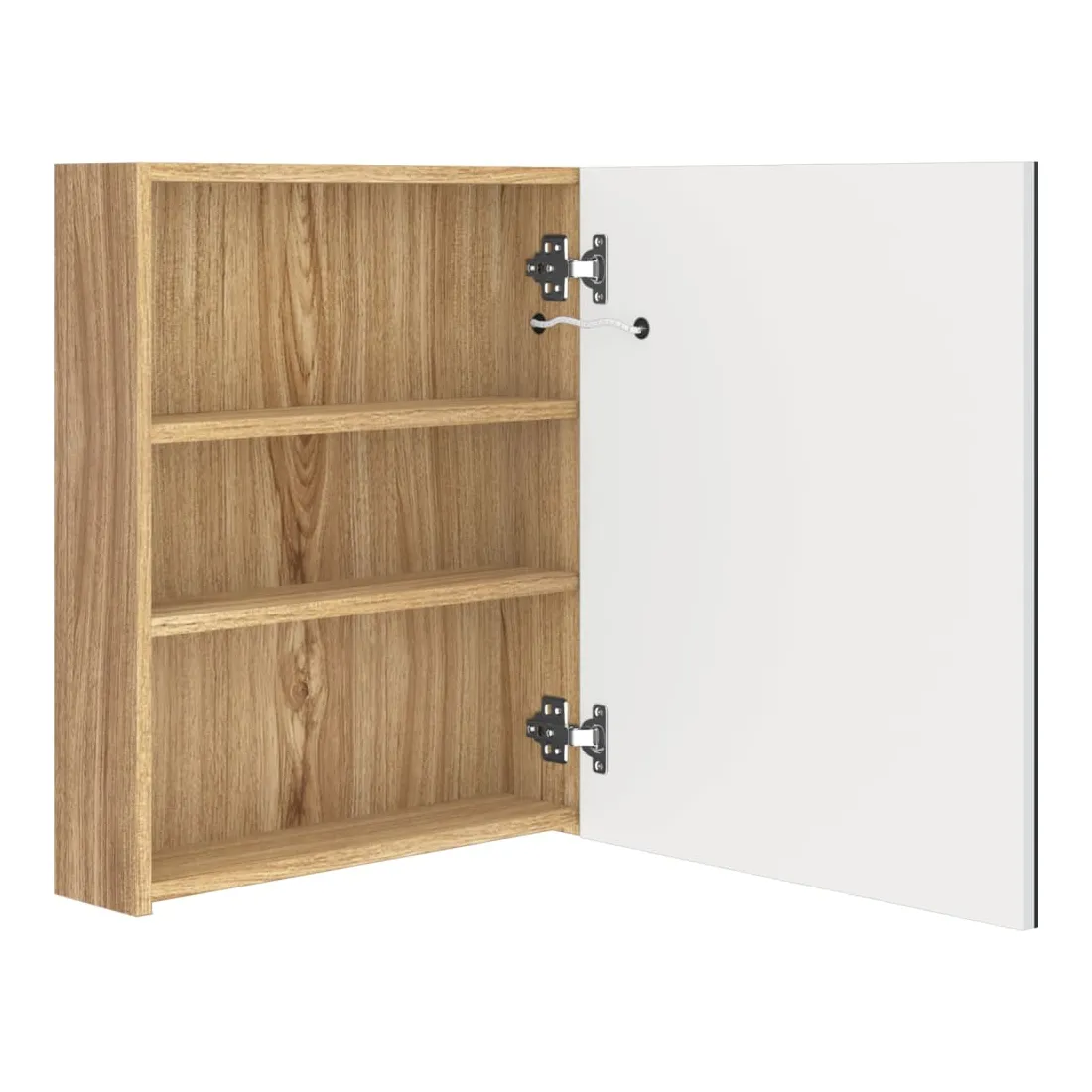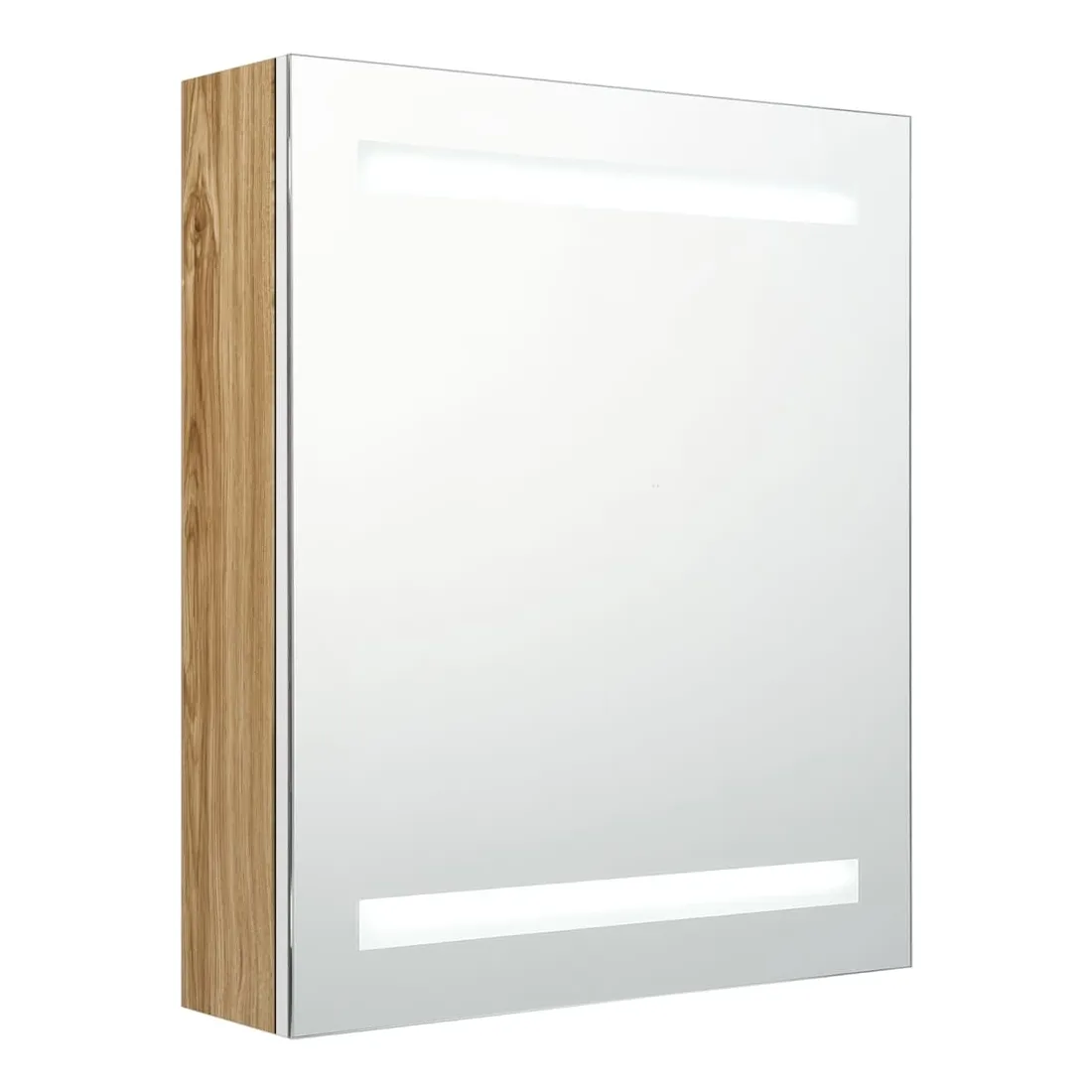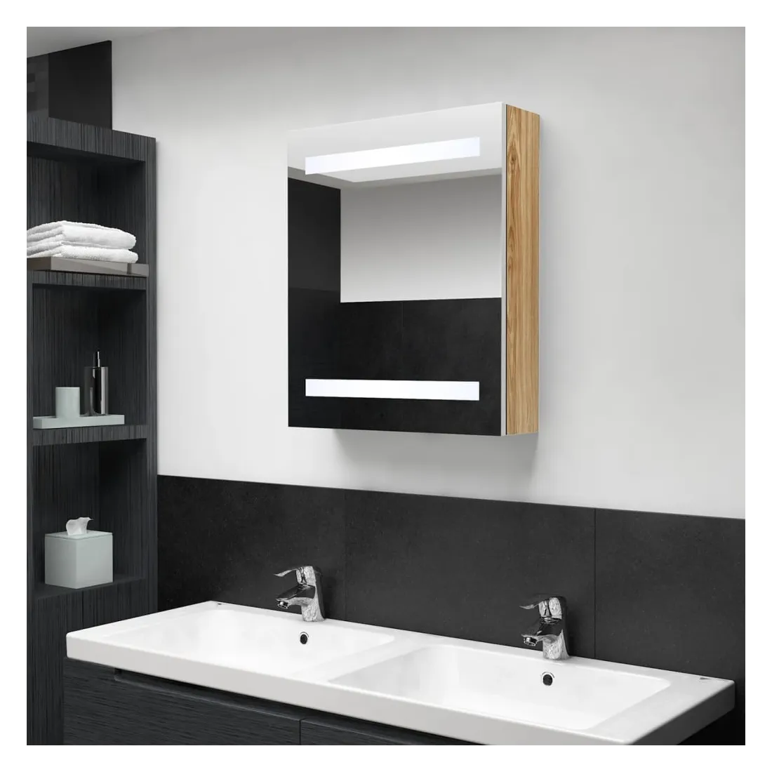 Introduisez une esthétique agréable dans votre salle de bain avec cette armoire à miroir à LED ! Cette armoire à miroir murale à LED ajoute une touche de style contemporain et une lumière douce et éclairante à toute pièce ! Cette armoire murale est fabriquée en panneaux MDF avec une finition mélaminée, garantissant une utilisation à long terme. Grâce aux deux bandes lumineuses à LED écoénergétiques, vous pouvez vous voir sous la lumière la plus pure pour le maquillage, les soins de la peau et les soins de la peau. Elle illumine votre pièce, votre visage et votre sourire. À l’intérieur, vous trouverez 3 étagères offrant un espace de rangement suffisant pour tous vos articles de toilette et accessoires de beauté. Vous pouvez facilement allumer/éteindre la lumière avec le bouton au fond. Élégant et fonctionnel, ce meuble saura sûrement rendre le design de votre pièce à l’origine exceptionnel ! Remarque :Ce produit est doté d'un connecteur USB, mais la source d'alimentation certifiée de USB 5V n'est pas incluse.