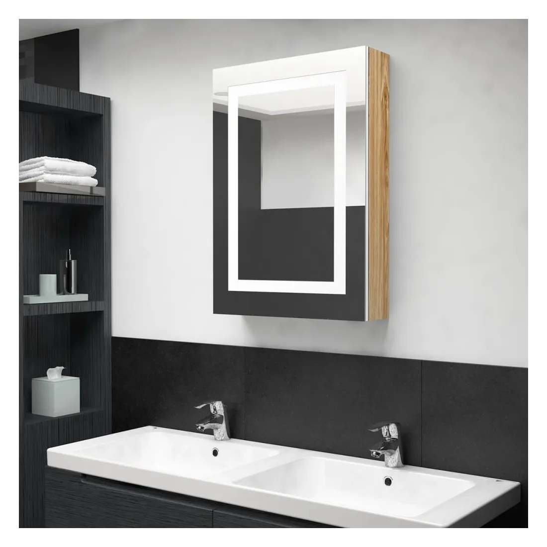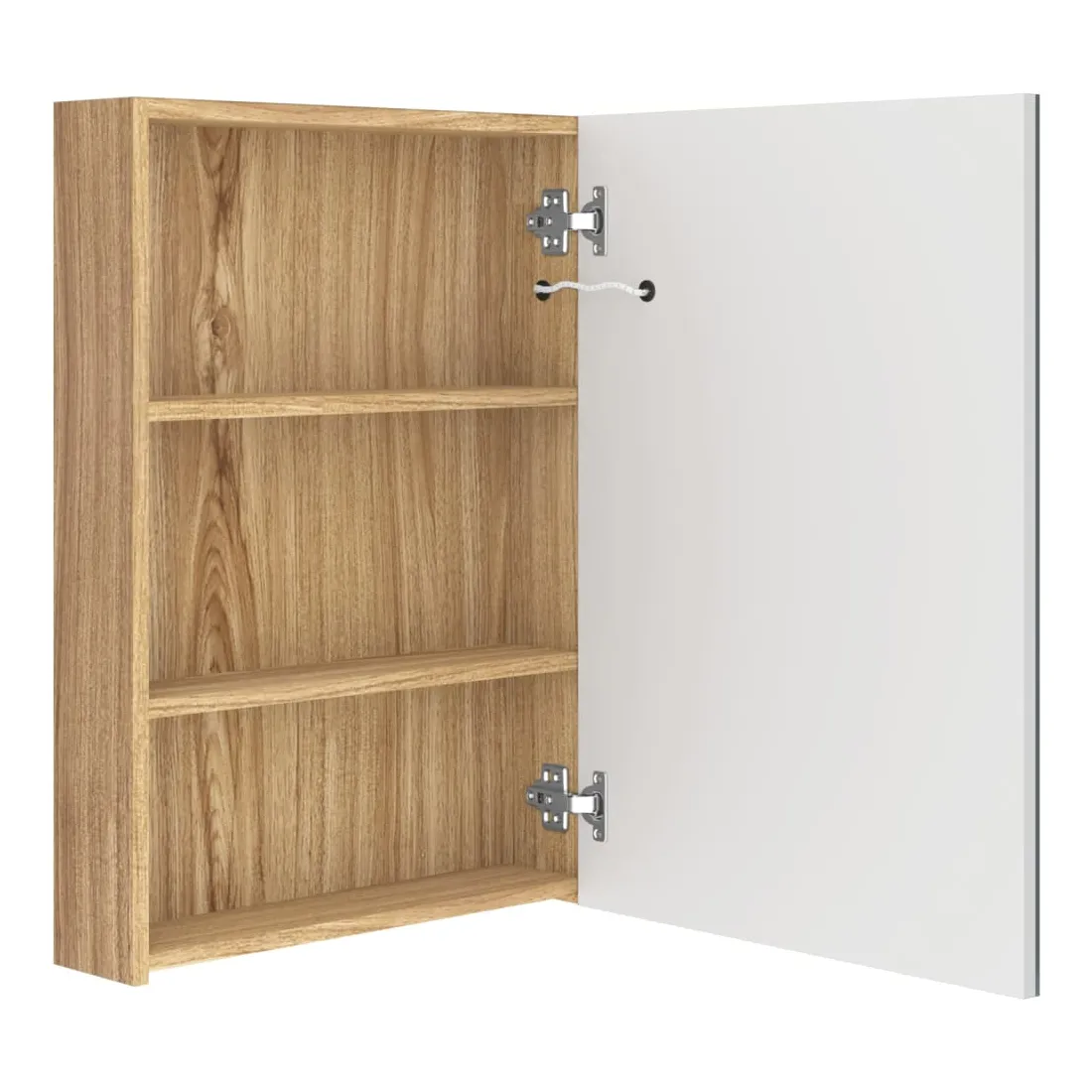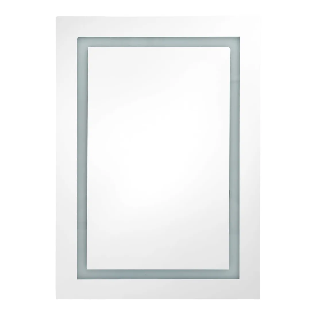 Introduisez une esthétique agréable dans votre salle de bain avec cette armoire à miroir à LED ! Cette armoire à miroir murale à LED ajoute une touche de style contemporain et une lumière douce et éclairante à toute pièce ! Cette armoire murale est fabriquée en panneaux MDF avec une finition mélaminée, garantissant une utilisation à long terme. Grâce aux deux bandes lumineuses à LED écoénergétiques, vous pouvez vous voir sous la lumière la plus pure pour le maquillage, les soins de la peau et les soins de la peau. Elle illumine votre pièce, votre visage et votre sourire. À l’intérieur, vous trouverez 3 étagères offrant un espace de rangement suffisant pour tous vos articles de toilette et accessoires de beauté. Vous pouvez facilement allumer/éteindre la lumière avec le bouton au fond. Élégant et fonctionnel, ce meuble saura sûrement rendre le design de votre pièce à l’origine exceptionnel ! Remarque :Ce produit est doté d'un connecteur USB, mais la source d'alimentation certifiée de USB 5V n'est pas incluse.