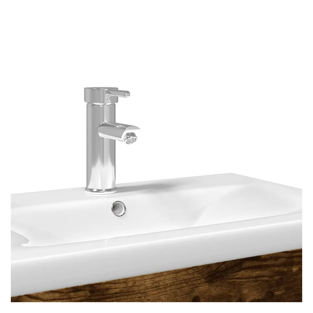 Cet élégant meuble-lavabo de salle de bain avec bassin intégré, avec un espace de rangement spacieux, est un excellent supplément à votre salle de bain, ce qui lui donne une apparence ordonnée et saisissante ! Matériau robuste : le meuble sous évier est fabriqué en bois d'ingénierie, qui est d'une qualité exceptionnelle avec une surface lisse et se caractérise également par sa solidité, stabilité et résistance à l'humidité.Grand espace de rangement : le meuble lavabo de salle de bain dispose de 1 tiroir, offrant un grand espace de rangement pour ranger des articles dans votre salle de bain.Fonction murale : l'armoire de salle de bain peut être fixée au mur pour ajouter de l'espace de stockage supplémentaire. De cette façon, vous pouvez maximiser votre espace au sol et garder la zone propre.Lavabo élégant : le lavabo de la salle de bain est fabriqué en céramique lisse, durable et facile à nettoyer. La surface vitrée apporte un design à la fois moderne et élégant.Trop-plein pratique : le lavabo est équipé d'une option anti-débordement qui permet d'évacuer l'eau lorsqu'il est trop plein. Bon à savoir :Les vis et les chevilles pour l'intérieur du mur ne sont pas incluses. Recherchez et utilisez des vis et des chevilles adaptées à vos murs. Si vous n'êtes pas sûr, demandez conseil à un professionnel. Lisez et suivez attentivement chaque étape des instructions.Le robinet et l'égouttoir à pousser avec fonction de trop-plein sont inclus.Le robinet est un robinet d'eau chaude et froide, et si vous avez besoin d'eau chaude, un chauffe-eau doit être connecté.