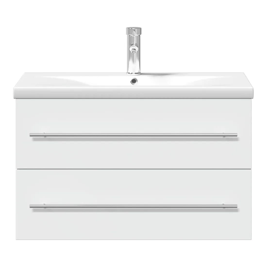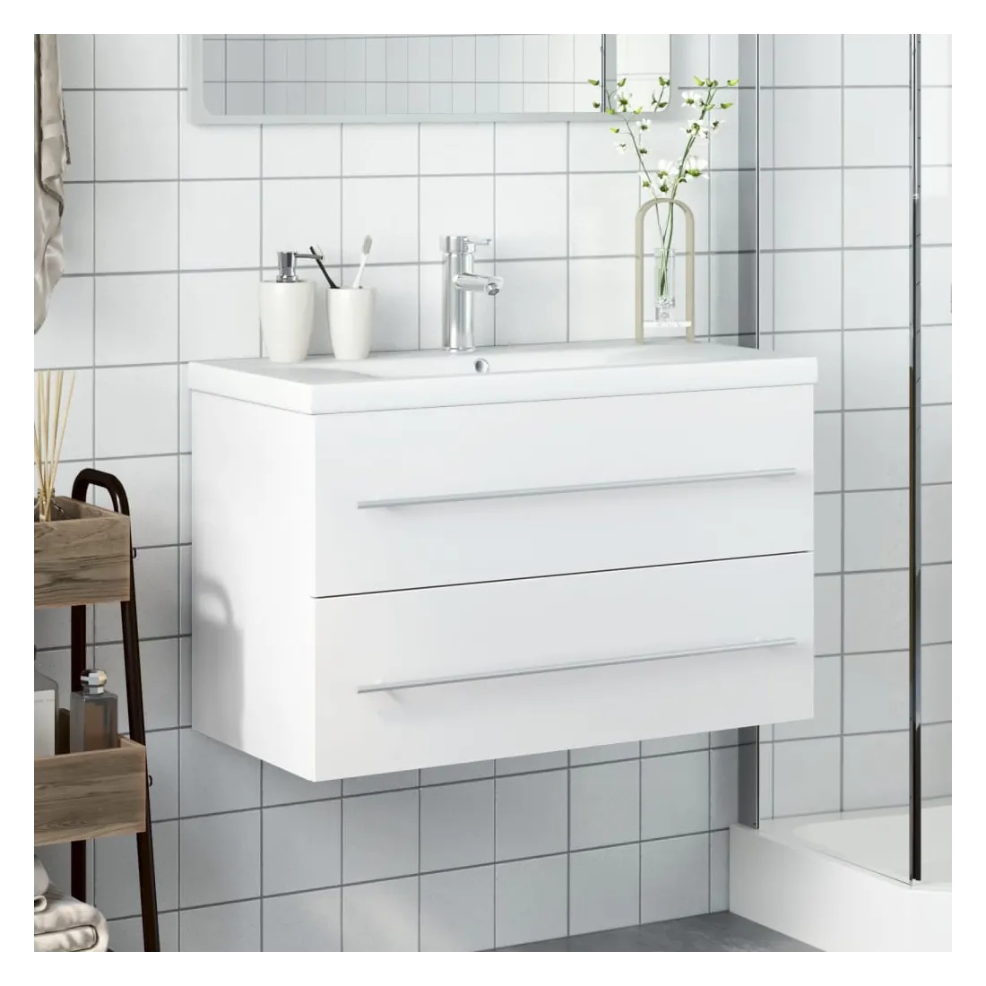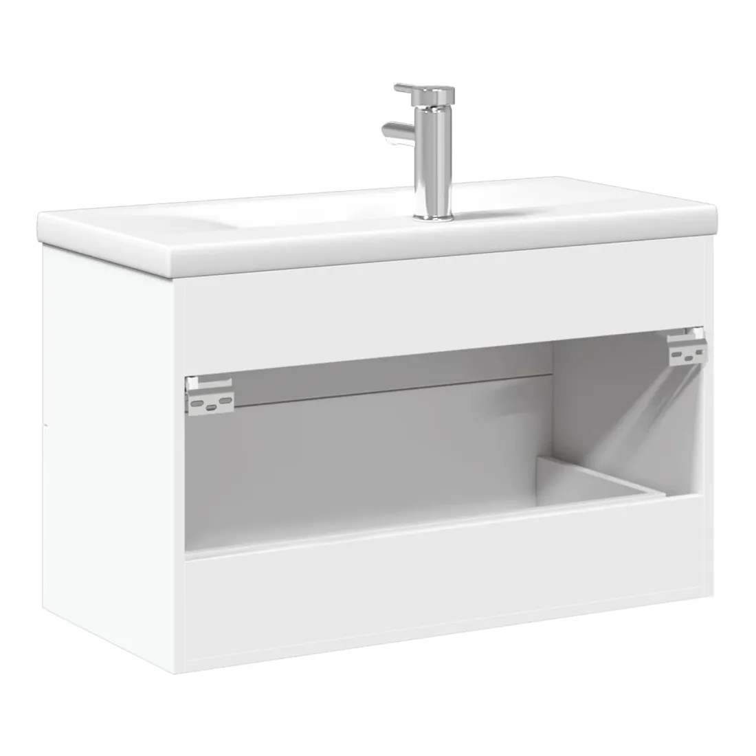 Cet élégant meuble-lavabo de salle de bain avec bassin intégré, avec un espace de rangement spacieux, est un excellent supplément à votre salle de bain, ce qui lui donne une apparence ordonnée et saisissante ! Matériau robuste : le meuble sous évier est fabriqué en bois d'ingénierie, qui est d'une qualité exceptionnelle avec une surface lisse et se caractérise également par sa solidité, stabilité et résistance à l'humidité.Grand espace de rangement : le meuble lavabo de salle de bain dispose de 1 tiroir, offrant un grand espace de rangement pour ranger des articles dans votre salle de bain.Fonction murale : l'armoire de salle de bain peut être fixée au mur pour ajouter de l'espace de stockage supplémentaire. De cette façon, vous pouvez maximiser votre espace au sol et garder la zone propre.Lavabo élégant : le lavabo de la salle de bain est fabriqué en céramique lisse, durable et facile à nettoyer. La surface vitrée apporte un design à la fois moderne et élégant.Trop-plein pratique : le lavabo est équipé d'une option anti-débordement qui permet d'évacuer l'eau lorsqu'il est trop plein. Bon à savoir :Les vis et les chevilles pour l'intérieur du mur ne sont pas incluses. Recherchez et utilisez des vis et des chevilles adaptées à vos murs. Si vous n'êtes pas sûr, demandez conseil à un professionnel. Lisez et suivez attentivement chaque étape des instructions.Le robinet et l'égouttoir à pousser avec fonction de trop-plein sont inclus.Le robinet est un robinet d'eau chaude et froide, et si vous avez besoin d'eau chaude, un chauffe-eau doit être connecté.