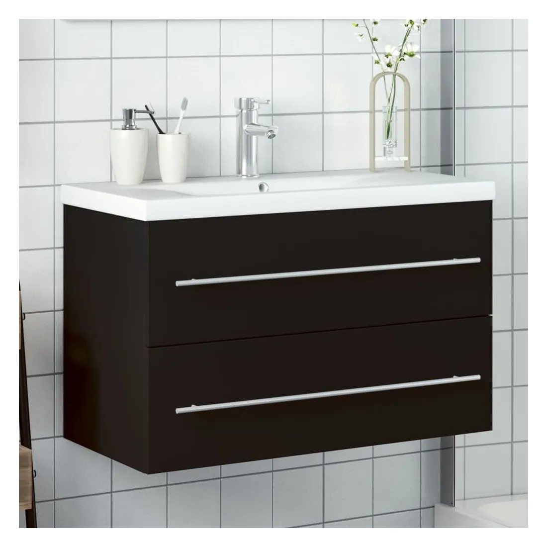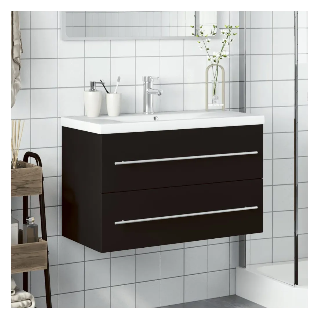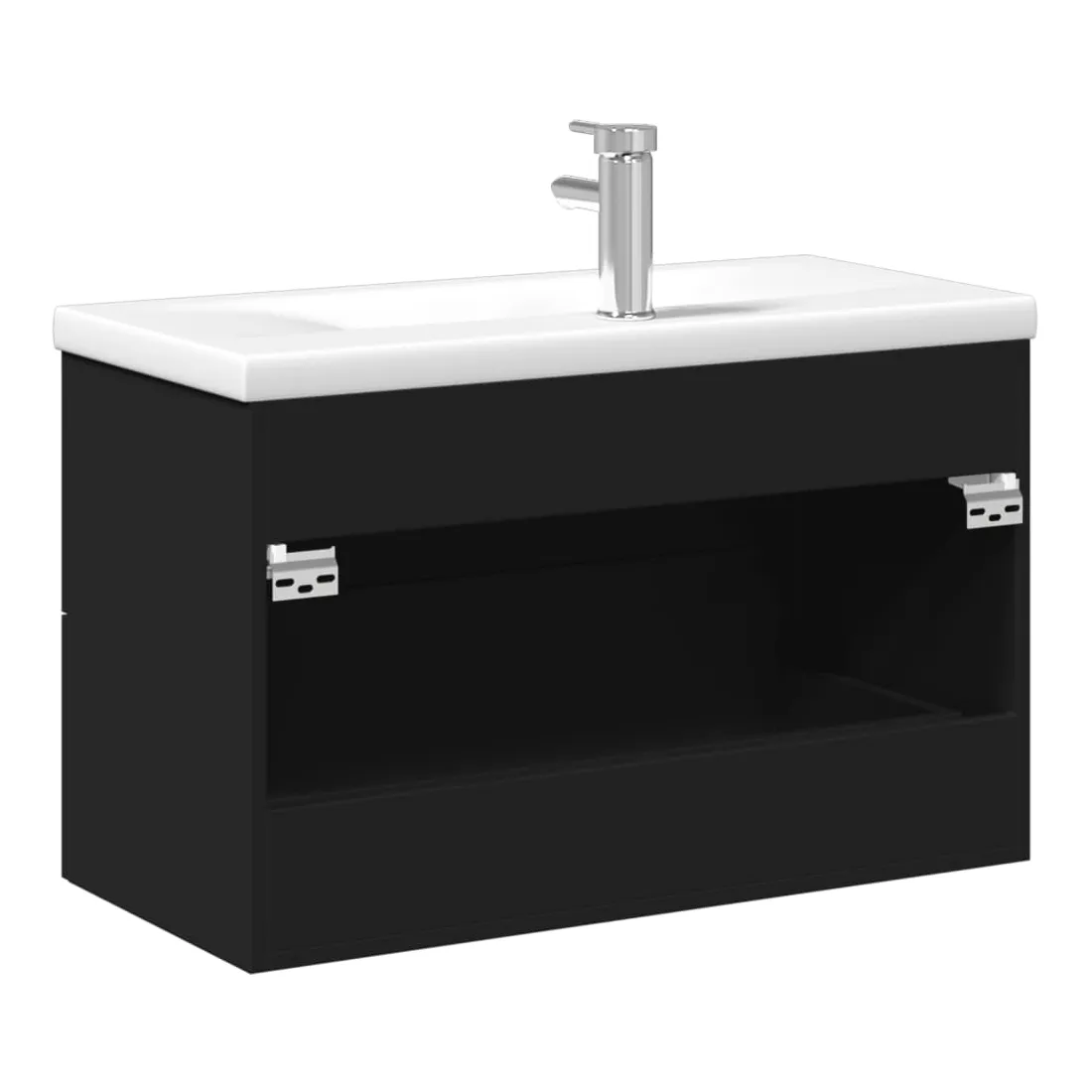 Cet élégant meuble-lavabo de salle de bain avec bassin intégré, avec un espace de rangement spacieux, est un excellent supplément à votre salle de bain, ce qui lui donne une apparence ordonnée et saisissante ! Matériau robuste : le meuble sous évier est fabriqué en bois d'ingénierie, qui est d'une qualité exceptionnelle avec une surface lisse et se caractérise également par sa solidité, stabilité et résistance à l'humidité.Grand espace de rangement : le meuble lavabo de salle de bain dispose de 1 tiroir, offrant un grand espace de rangement pour ranger des articles dans votre salle de bain.Fonction murale : l'armoire de salle de bain peut être fixée au mur pour ajouter de l'espace de stockage supplémentaire. De cette façon, vous pouvez maximiser votre espace au sol et garder la zone propre.Lavabo élégant : le lavabo de la salle de bain est fabriqué en céramique lisse, durable et facile à nettoyer. La surface vitrée apporte un design à la fois moderne et élégant.Trop-plein pratique : le lavabo est équipé d'une option anti-débordement qui permet d'évacuer l'eau lorsqu'il est trop plein. Bon à savoir :Les vis et les chevilles pour l'intérieur du mur ne sont pas incluses. Recherchez et utilisez des vis et des chevilles adaptées à vos murs. Si vous n'êtes pas sûr, demandez conseil à un professionnel. Lisez et suivez attentivement chaque étape des instructions.Le robinet et l'égouttoir à pousser avec fonction de trop-plein sont inclus.Le robinet est un robinet d'eau chaude et froide, et si vous avez besoin d'eau chaude, un chauffe-eau doit être connecté.