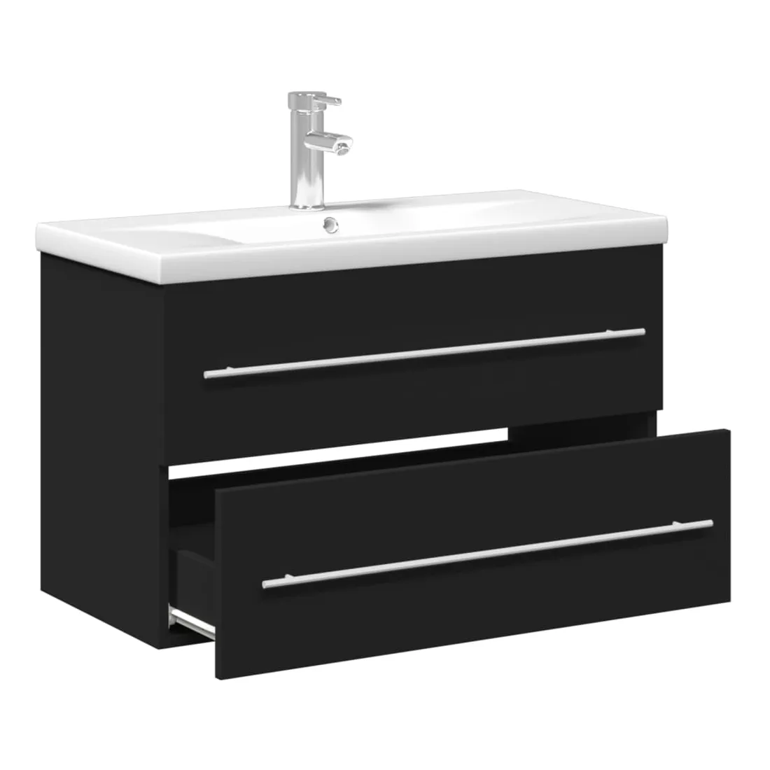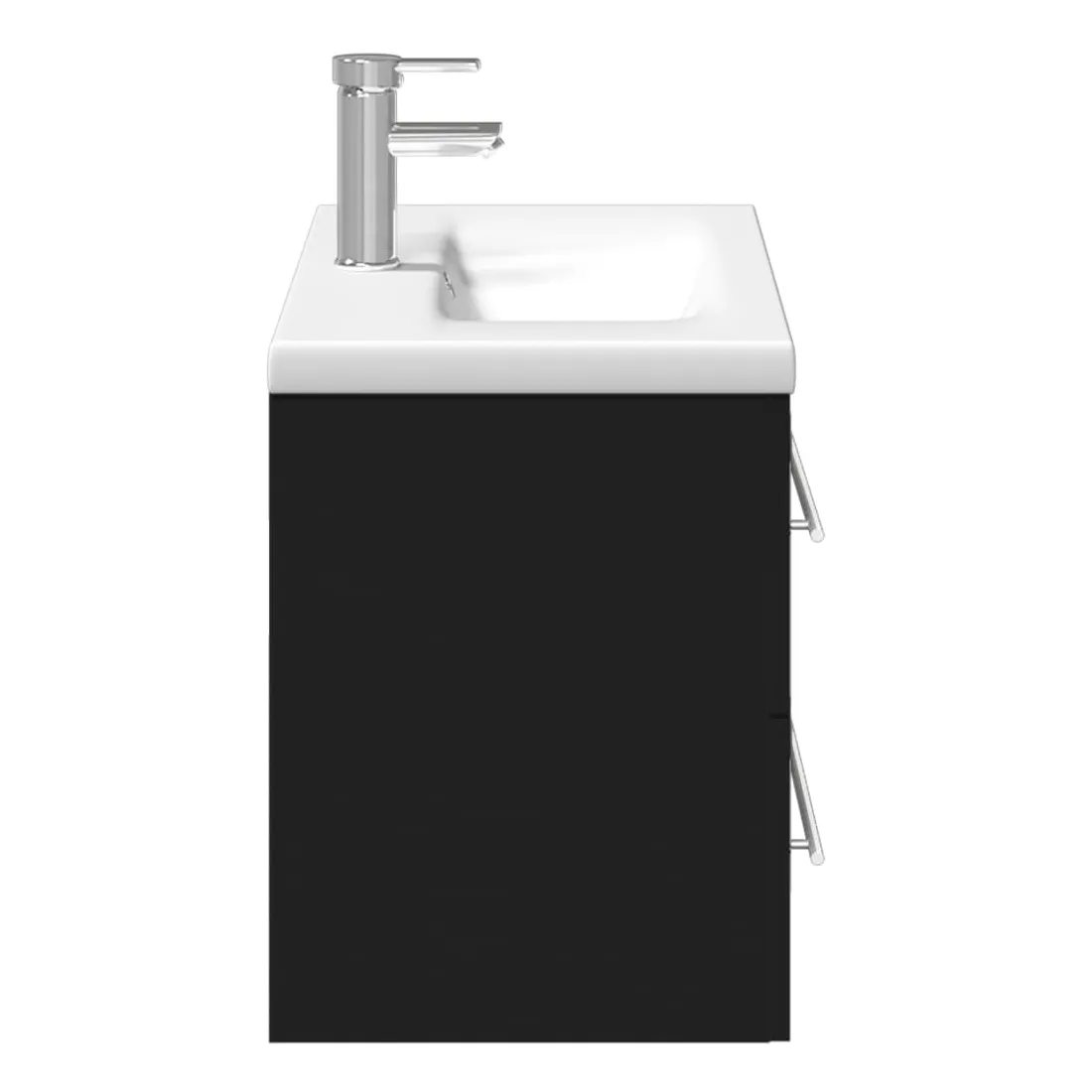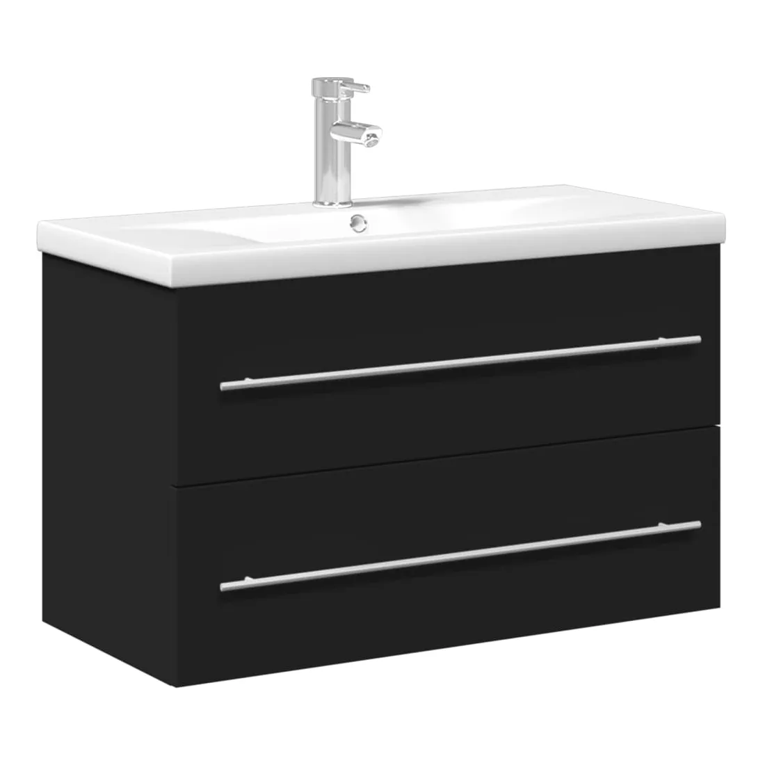 Cet élégant meuble-lavabo de salle de bain avec bassin intégré, avec un espace de rangement spacieux, est un excellent supplément à votre salle de bain, ce qui lui donne une apparence ordonnée et saisissante ! Matériau robuste : le meuble sous évier est fabriqué en bois d'ingénierie, qui est d'une qualité exceptionnelle avec une surface lisse et se caractérise également par sa solidité, stabilité et résistance à l'humidité.Grand espace de rangement : le meuble lavabo de salle de bain dispose de 1 tiroir, offrant un grand espace de rangement pour ranger des articles dans votre salle de bain.Fonction murale : l'armoire de salle de bain peut être fixée au mur pour ajouter de l'espace de stockage supplémentaire. De cette façon, vous pouvez maximiser votre espace au sol et garder la zone propre.Lavabo élégant : le lavabo de la salle de bain est fabriqué en céramique lisse, durable et facile à nettoyer. La surface vitrée apporte un design à la fois moderne et élégant.Trop-plein pratique : le lavabo est équipé d'une option anti-débordement qui permet d'évacuer l'eau lorsqu'il est trop plein. Bon à savoir :Les vis et les chevilles pour l'intérieur du mur ne sont pas incluses. Recherchez et utilisez des vis et des chevilles adaptées à vos murs. Si vous n'êtes pas sûr, demandez conseil à un professionnel. Lisez et suivez attentivement chaque étape des instructions.Le robinet et l'égouttoir à pousser avec fonction de trop-plein sont inclus.Le robinet est un robinet d'eau chaude et froide, et si vous avez besoin d'eau chaude, un chauffe-eau doit être connecté.