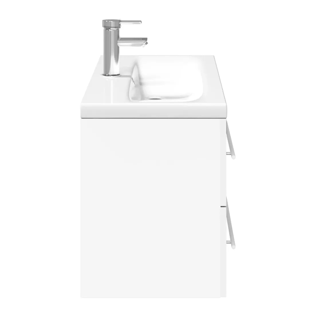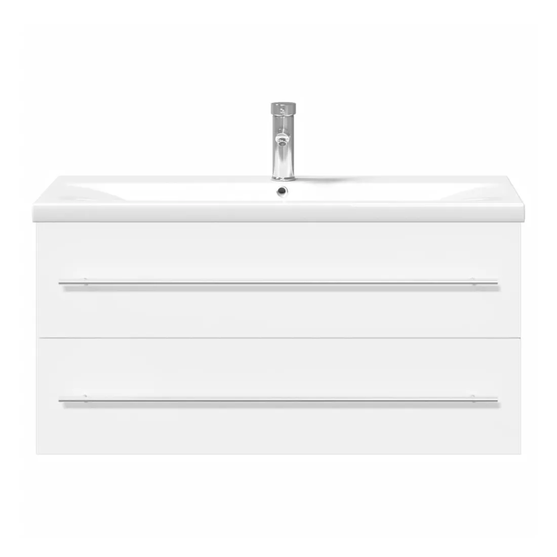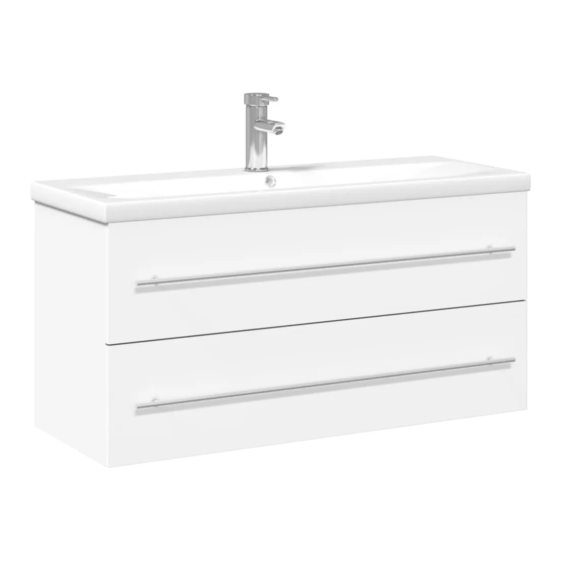 vidaXLCet élégant meuble-lavabo de salle de bain avec bassin intégré, avec un espace de rangement spacieux, est un excellent supplément à votre salle de bain, ce qui lui donne une apparence ordonnée et saisissante ! Matériau robuste : le meuble sous évier est fabriqué en bois d'ingénierie, qui est d'une qualité exceptionnelle avec une surface lisse et se caractérise également par sa solidité, stabilité et résistance à l'humidité.Grand espace de rangement : le meuble lavabo de salle de bain dispose de 1 tiroir, offrant un grand espace de rangement pour ranger des articles dans votre salle de bain.Fonction murale : l'armoire de salle de bain peut être fixée au mur pour ajouter de l'espace de stockage supplémentaire. De cette façon, vous pouvez maximiser votre espace au sol et garder la zone propre.Lavabo élégant : le lavabo de la salle de bain est fabriqué en céramique lisse, durable et facile à nettoyer. La surface vitrée apporte un design à la fois moderne et élégant.Trop-plein pratique : le lavabo est équipé d'une option anti-débordement qui permet d'évacuer l'eau lorsqu'il est trop plein. Bon à savoir :Les vis et les chevilles pour l'intérieur du mur ne sont pas incluses. Recherchez et utilisez des vis et des chevilles adaptées à vos murs. Si vous n'êtes pas sûr, demandez conseil à un professionnel. Lisez et suivez attentivement chaque étape des instructions.Le robinet et l'égouttoir à pousser avec fonction de trop-plein sont inclus.Le robinet est un robinet d'eau chaude et froide, et si vous avez besoin d'eau chaude, un chauffe-eau doit être connecté.